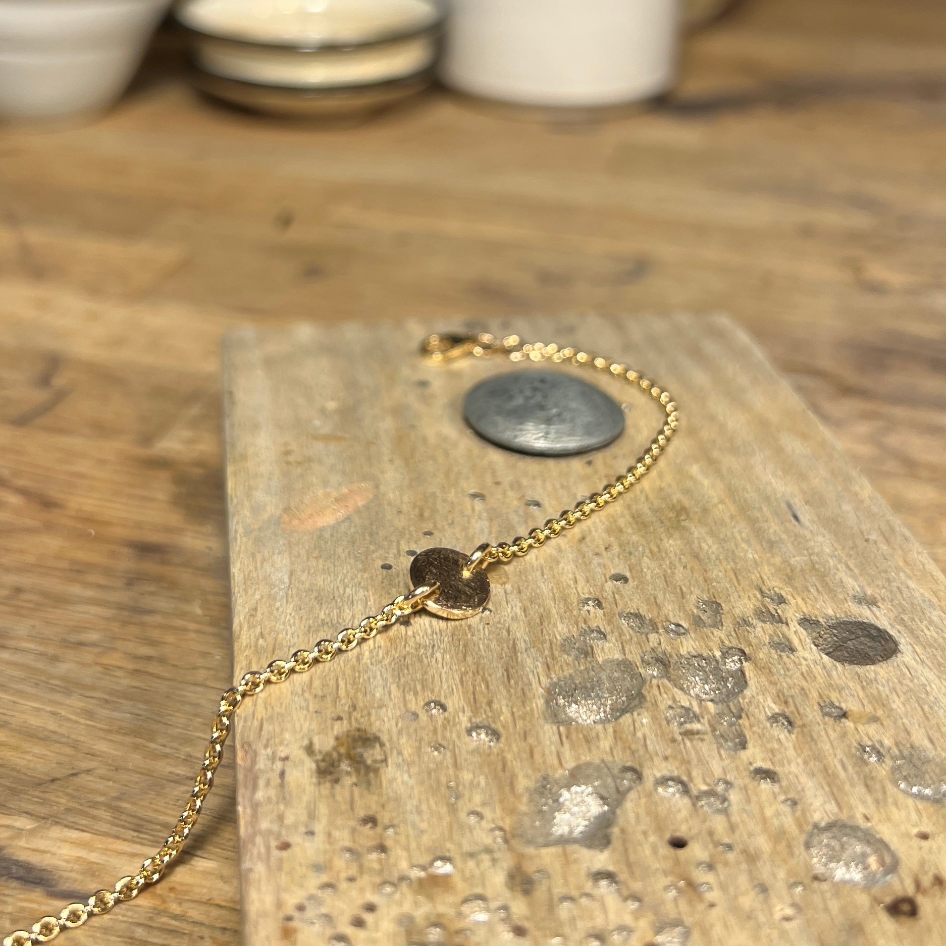 14 karat guldarmbånd - rund anker med matteret rundel 8 mm. Armbåndet er 18 cm langt