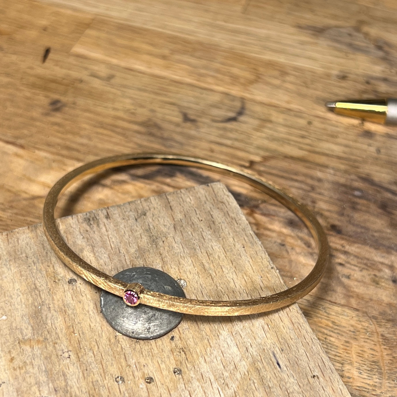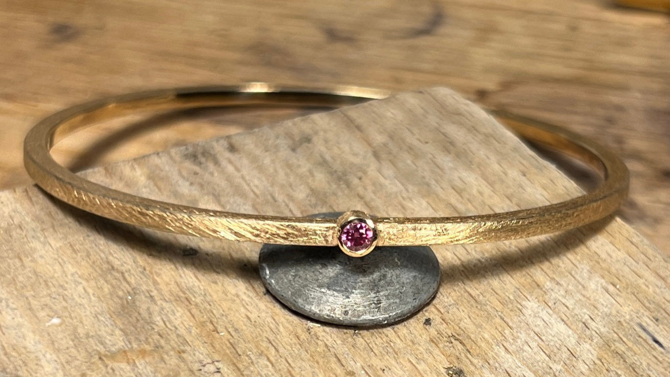 Guldarmring med pink behandlet brillant 0.10 ct.