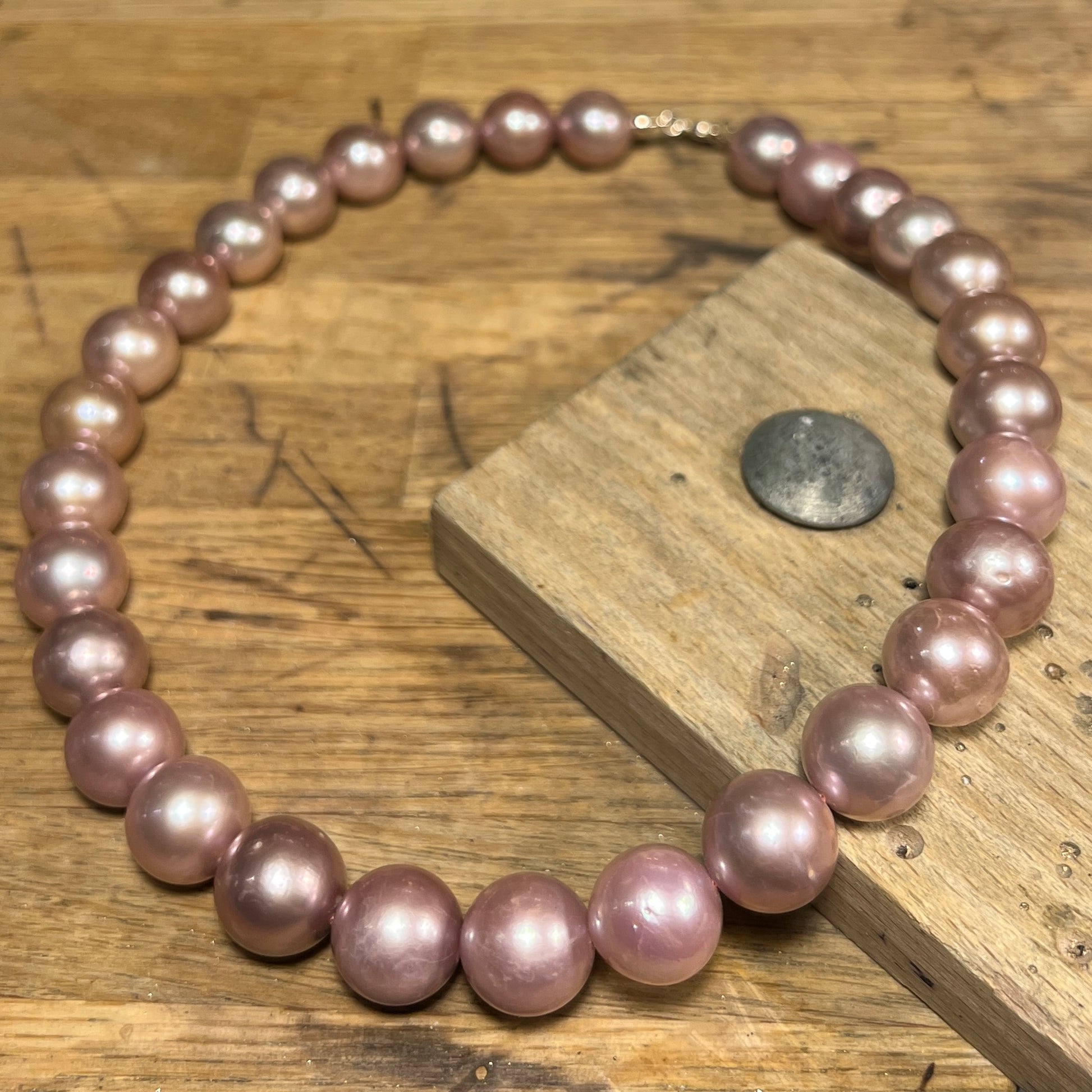 Ferskvandsperler støvet rosafarvede med sølvlås. Collieret er 42 cm langt.