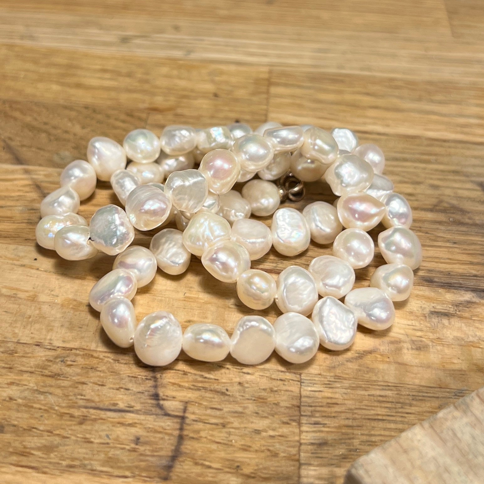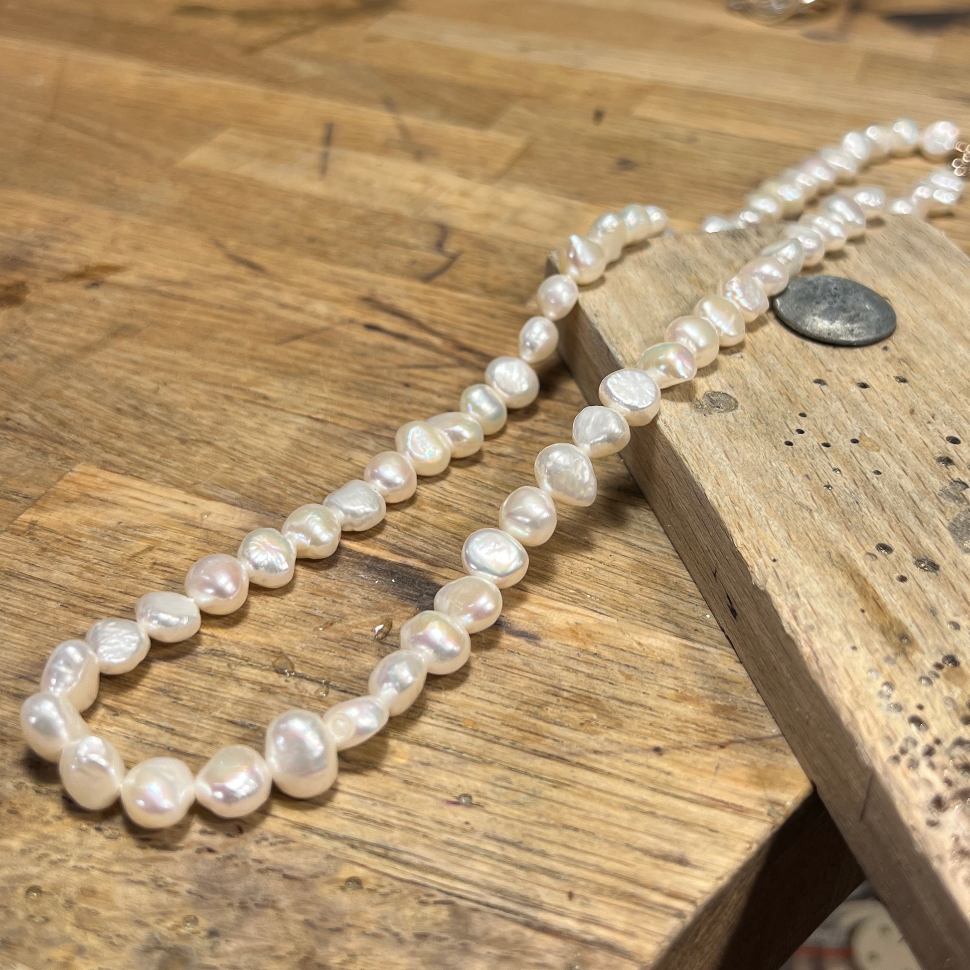Ferskvandsperler. Kæden er 50 cm og med sølvlås.