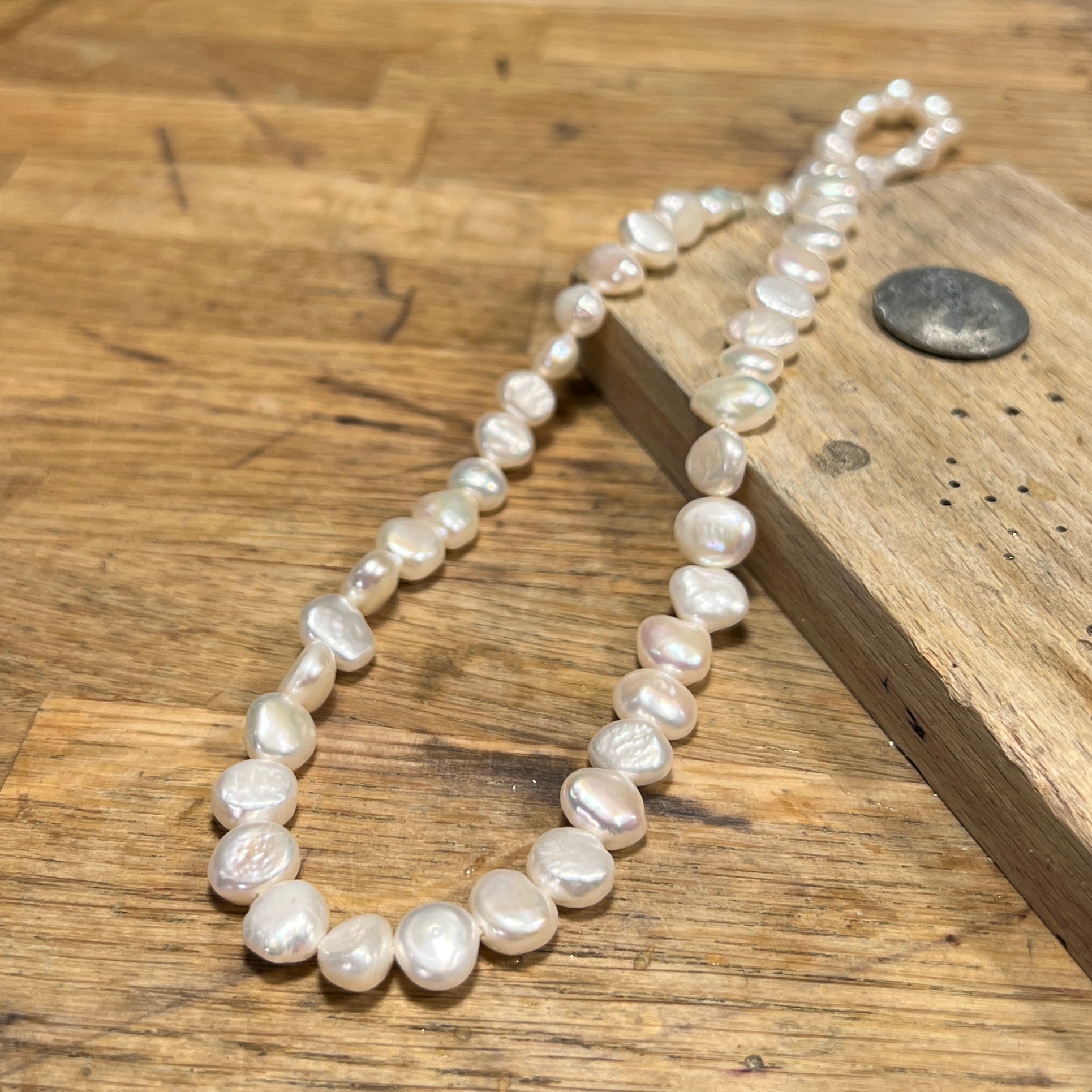 Ferskvandsperler. Kæden er 42 cm lang og med guldlås.