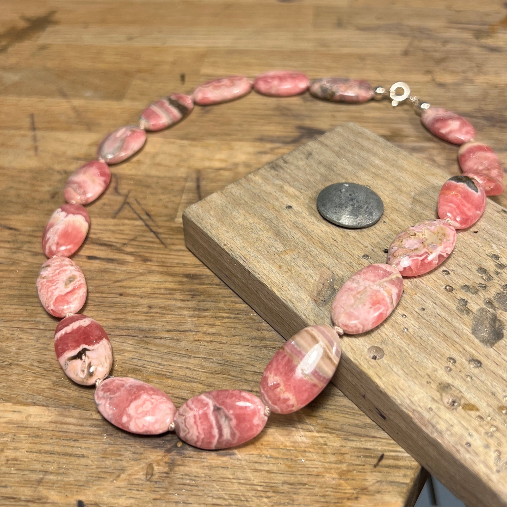 Rhodocrositter med sølvlås. Kæden er 45 cm