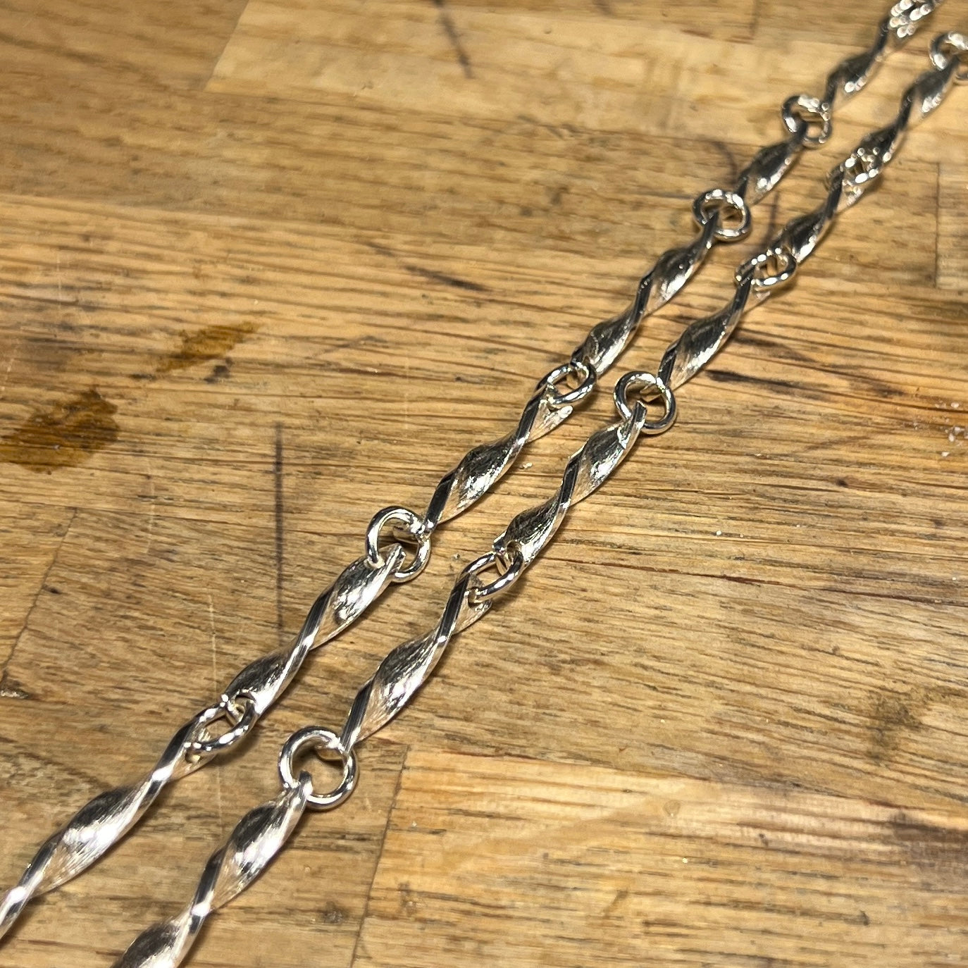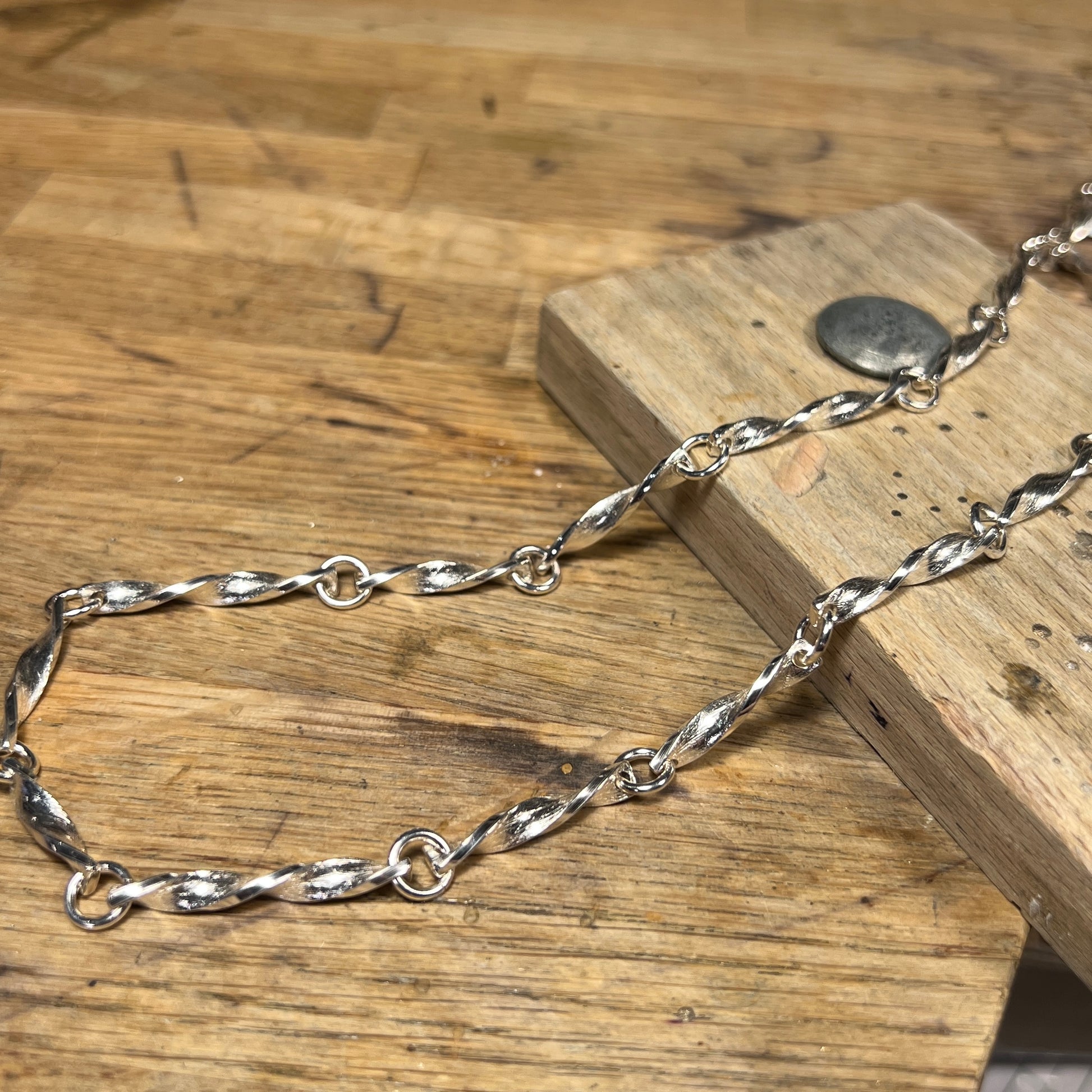 Sølvkæde af snoede led mat/ blank overflade. Kæden er 65 cm lang