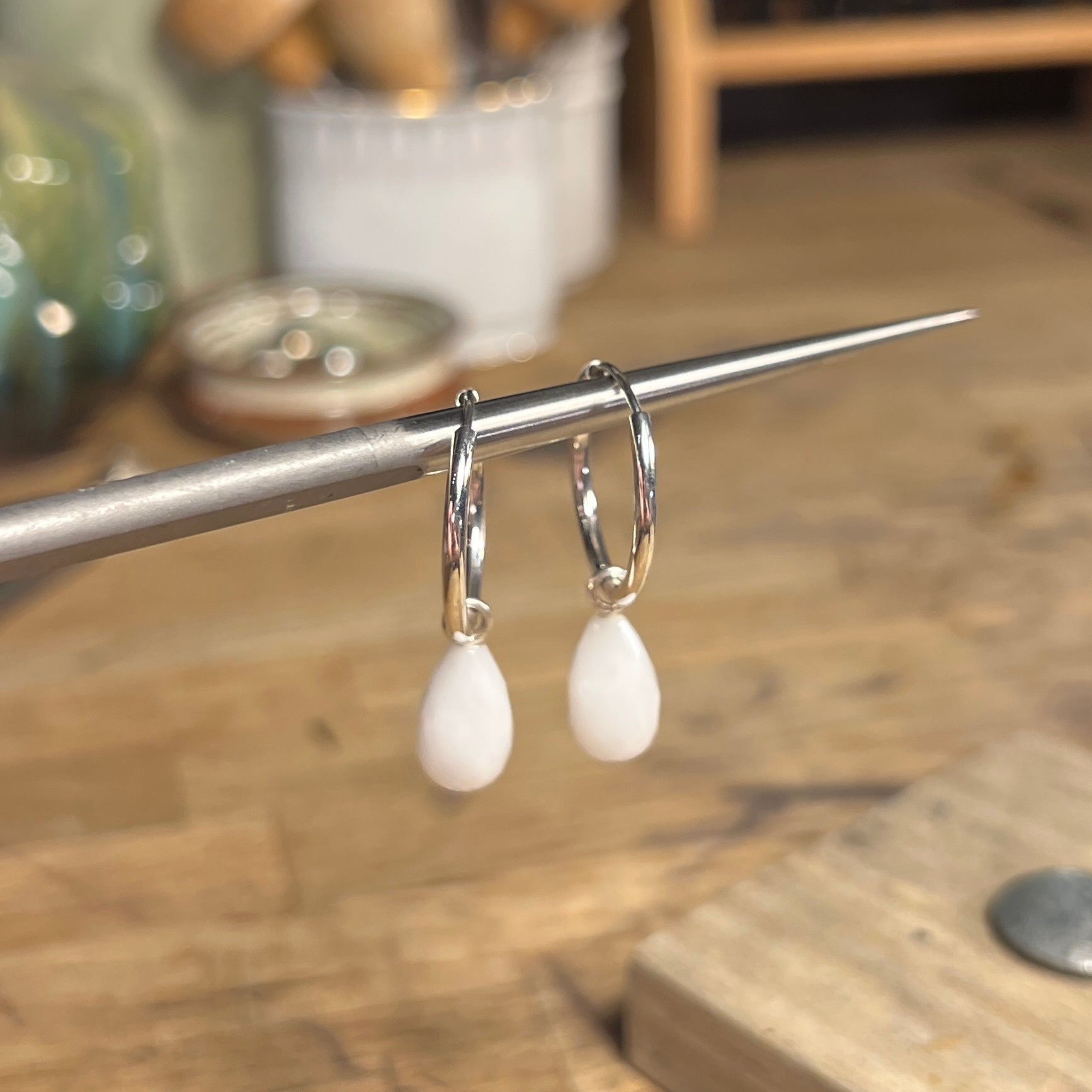 20 mm sølvcreoler med 13 mm facetterede dråbeformede cacholong