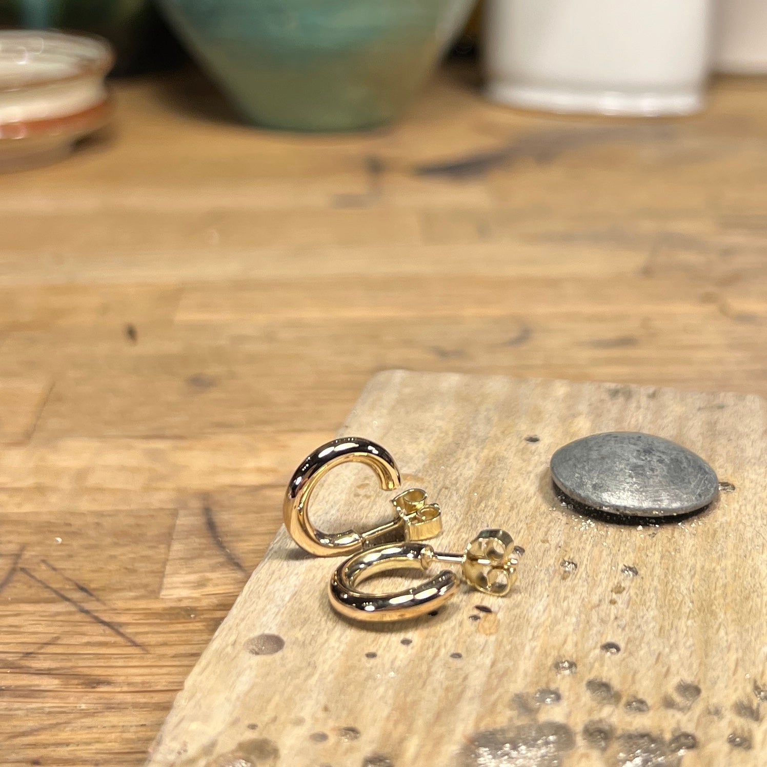 Massive blanke guldcreoler - 13 mm i diameter