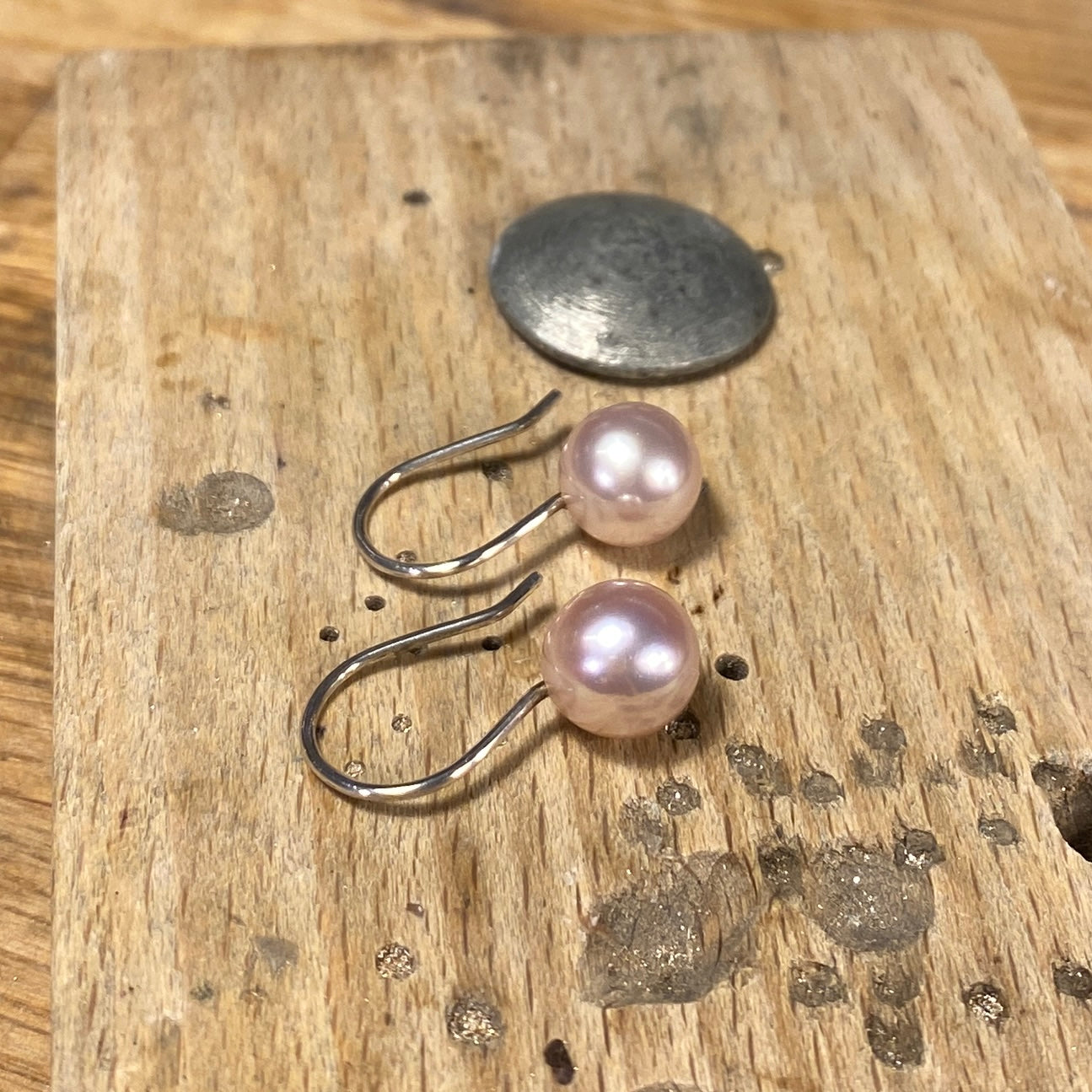 Ørekroge med rund rosa kulturperle 18,5 mm . Total længde 21 mm