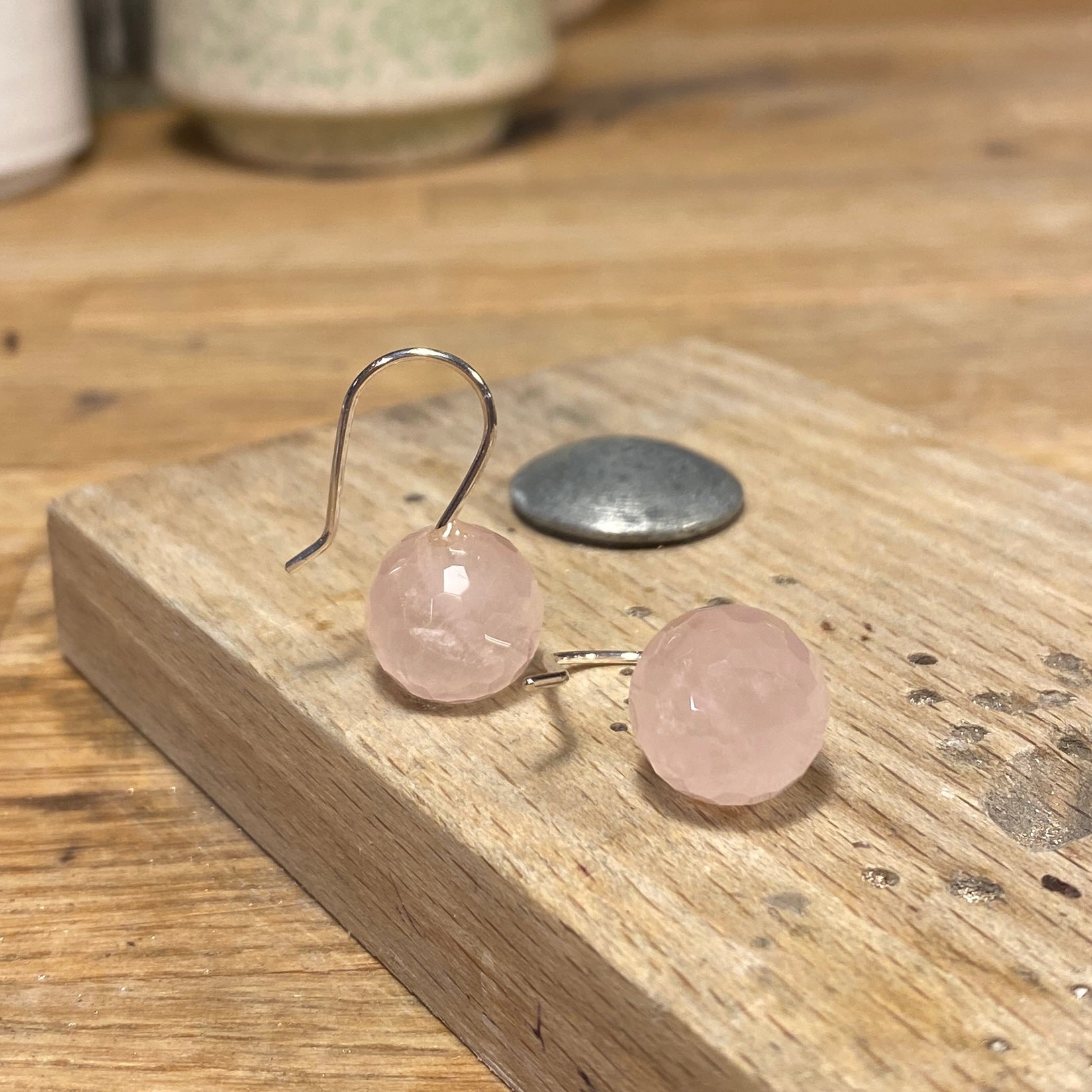 Ørekroge med facetterede rosaquartz kugle 10 mm