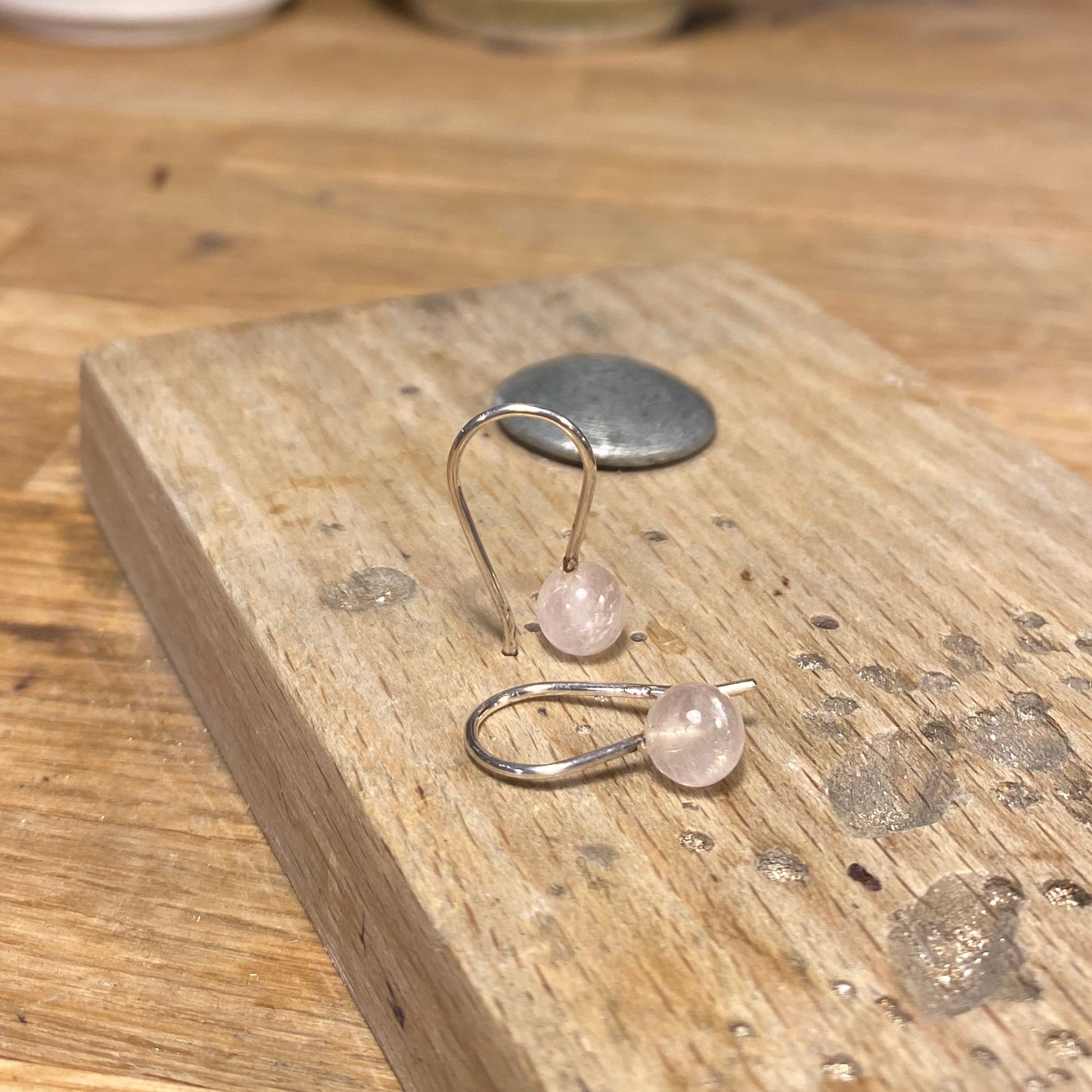 Ørekroge med rosa quartz 6 mm . Længden er 20 mm
