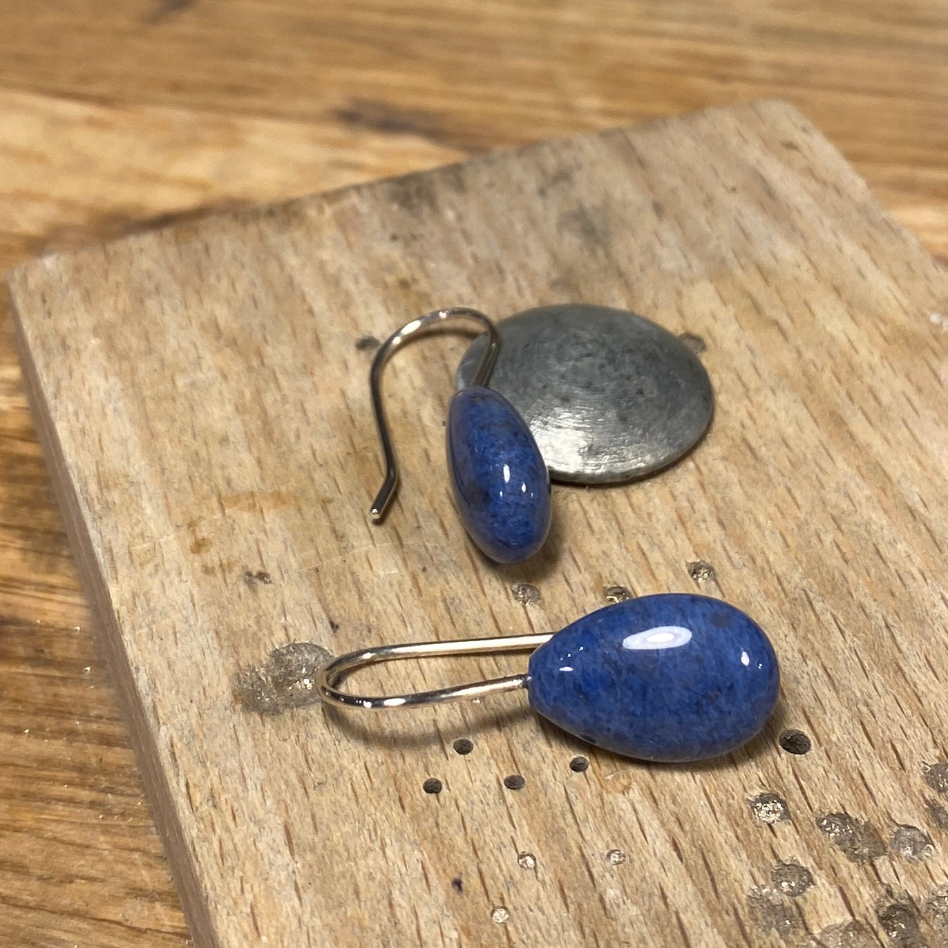 Ørekroge med dråber af dumortierte 15 x 6 mm . Længden er 27 mm