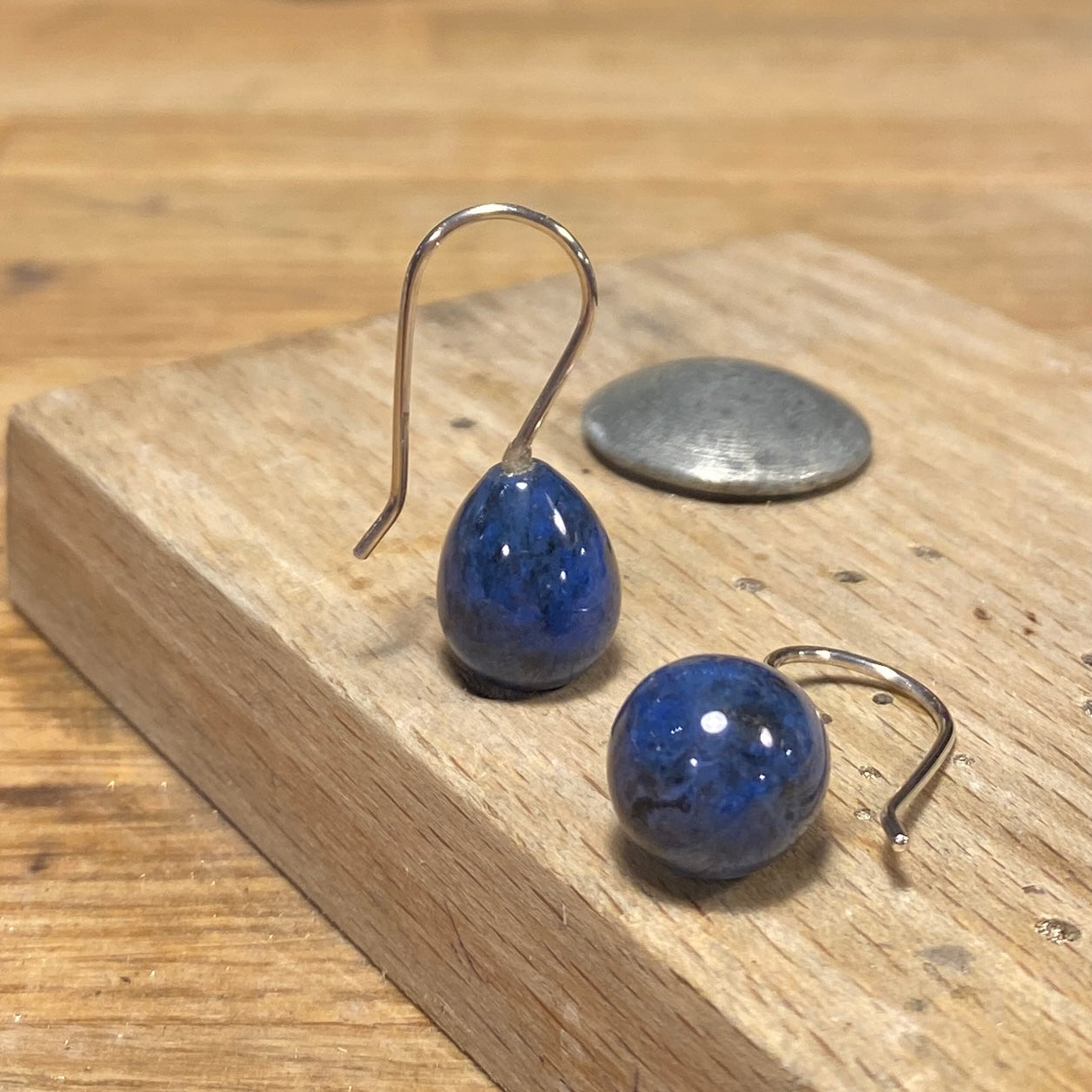 Ørekroge med dråber af dumortierte 12 x 10 mm . Længden er 27 mm