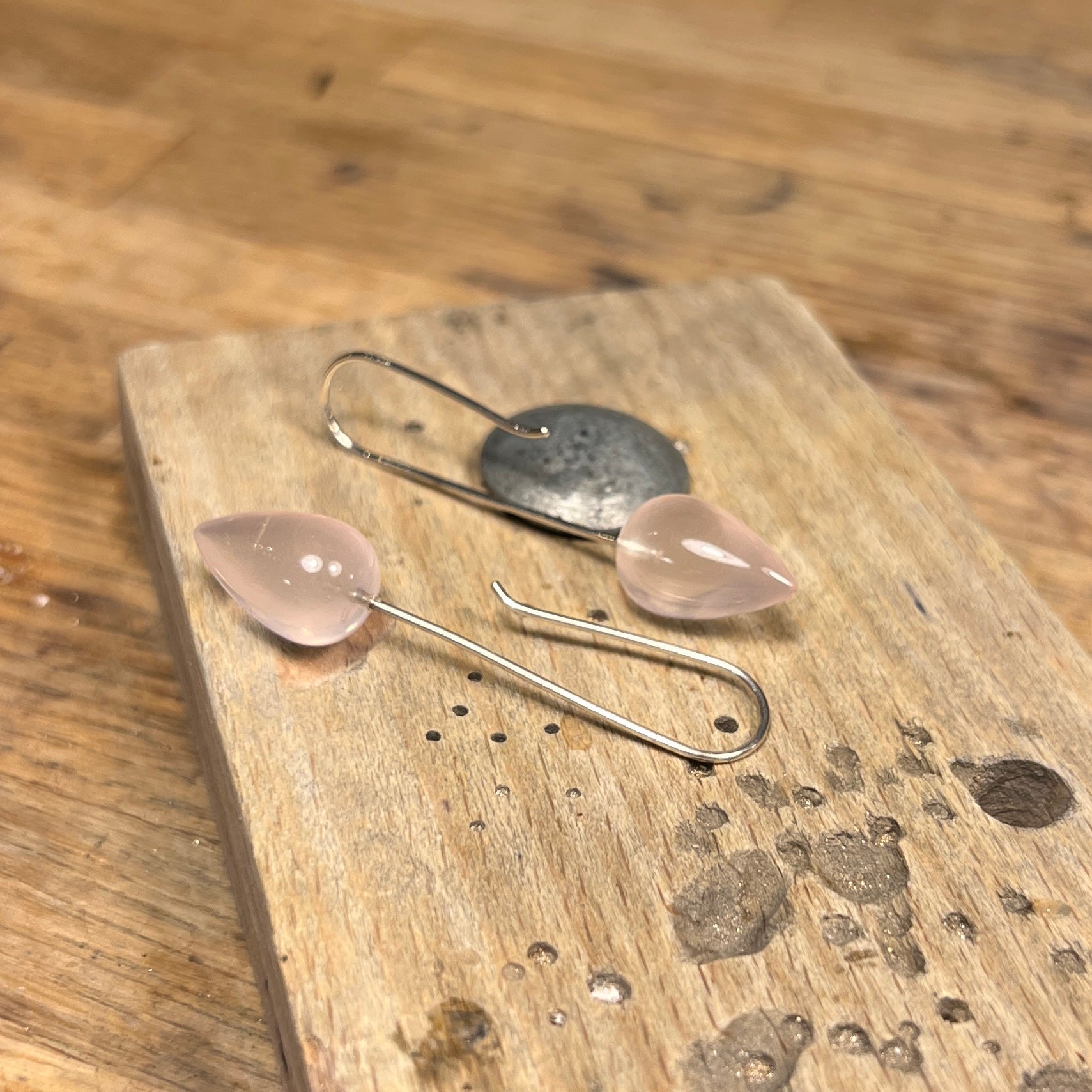 Sølvørekroge med rosa quarts. Rosa Quartzen er 16 mm . Den samlede længde er 50 mm