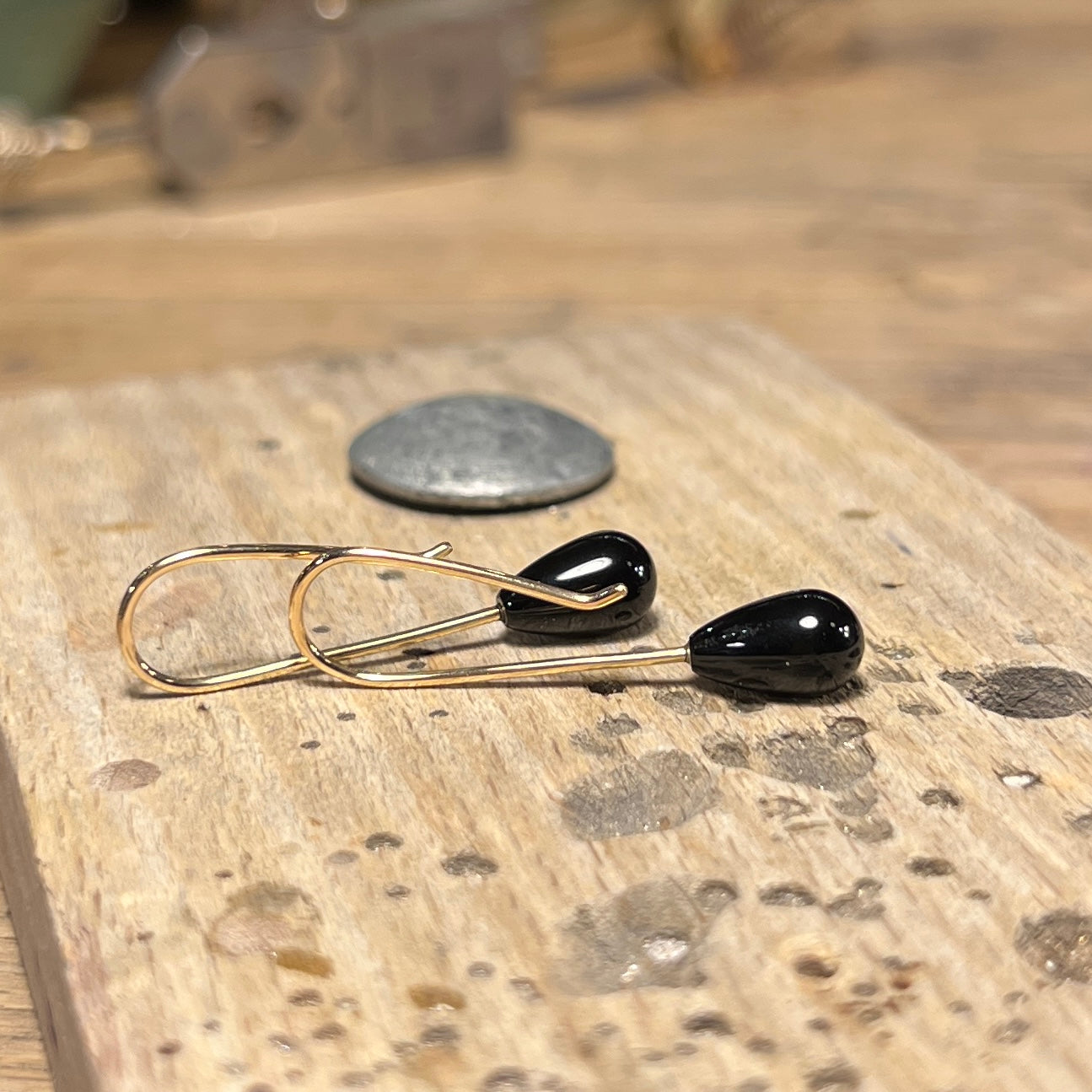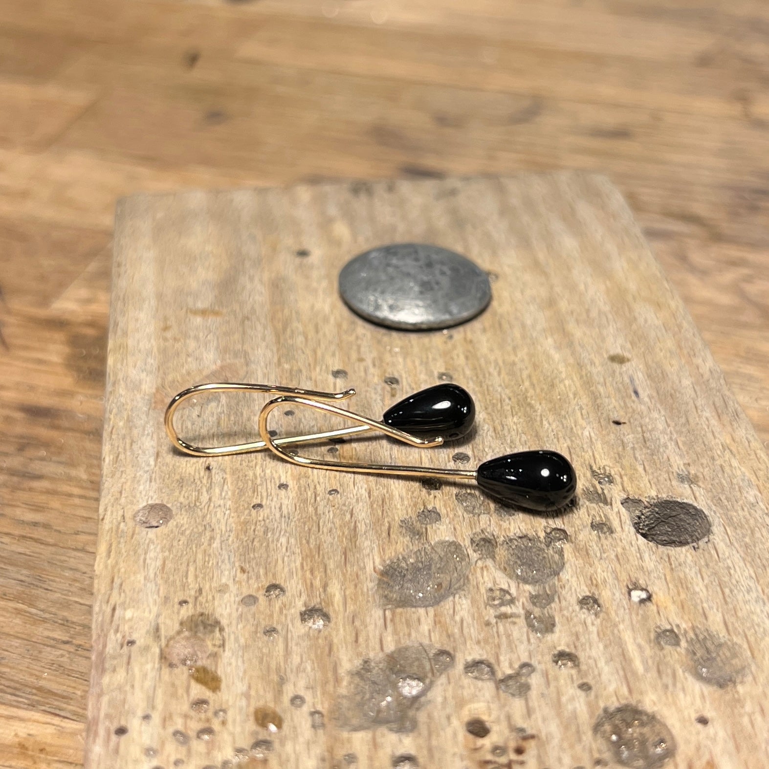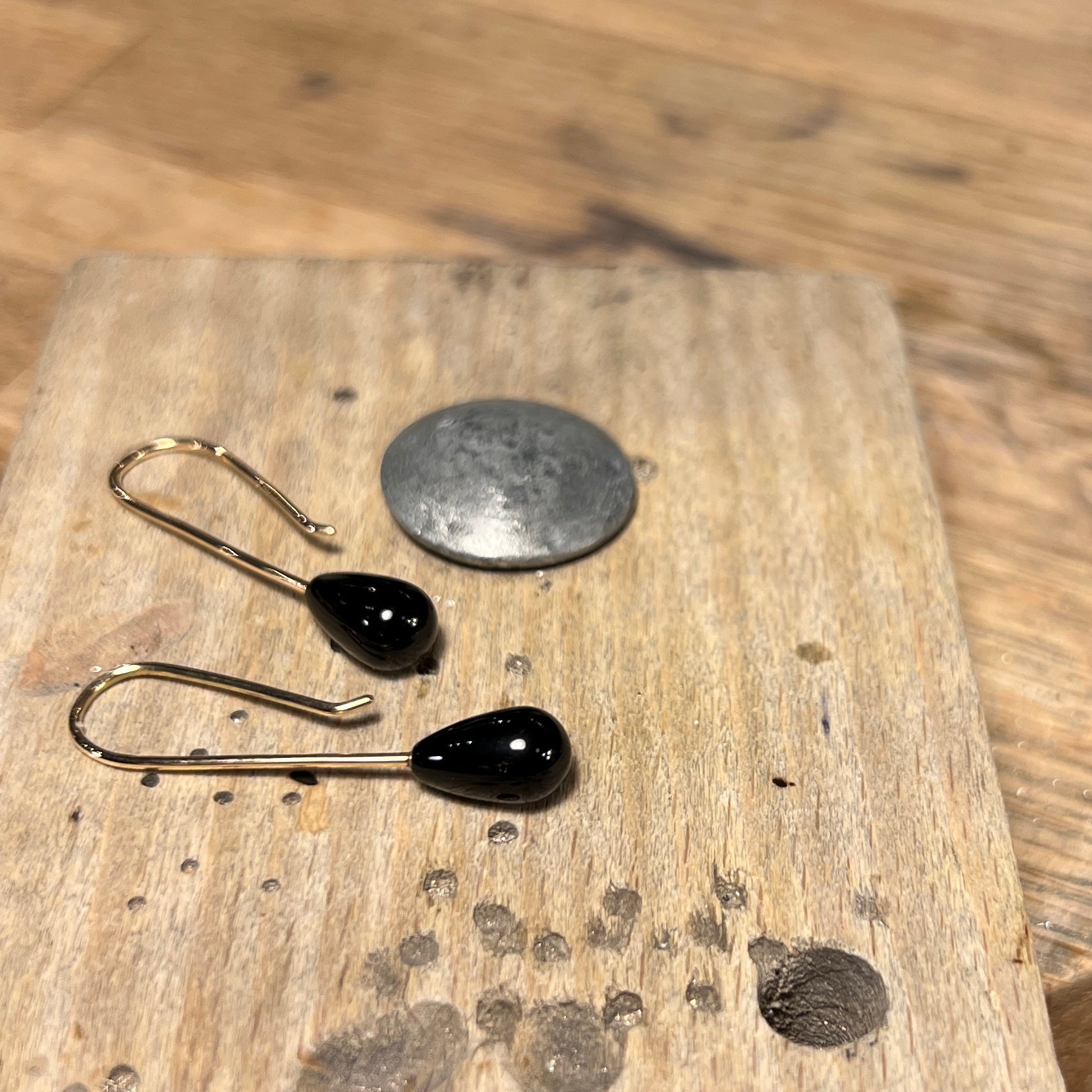 Guldørekroge med dråbeformede onyx 6 x 10 mm Den totale længde er 32 mm