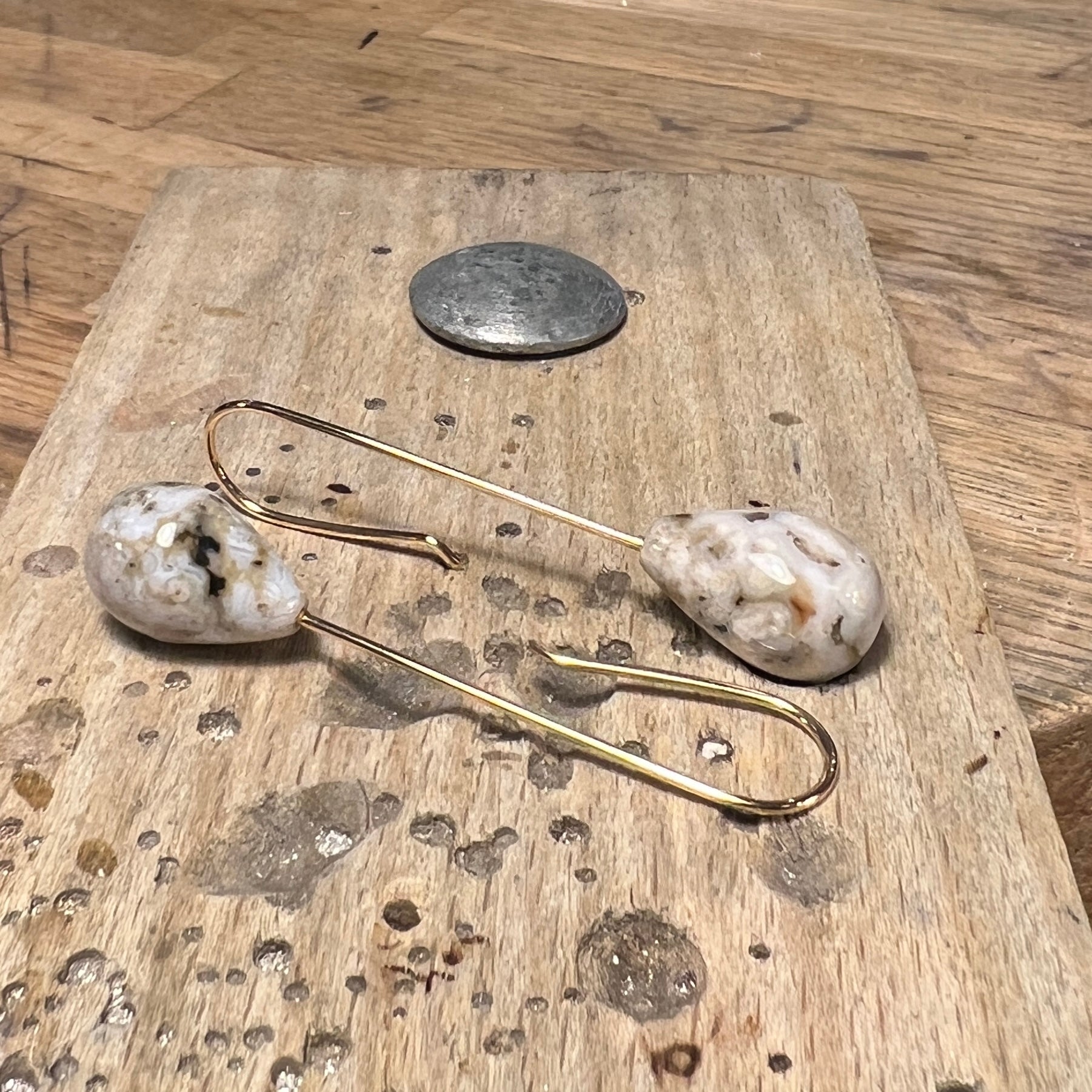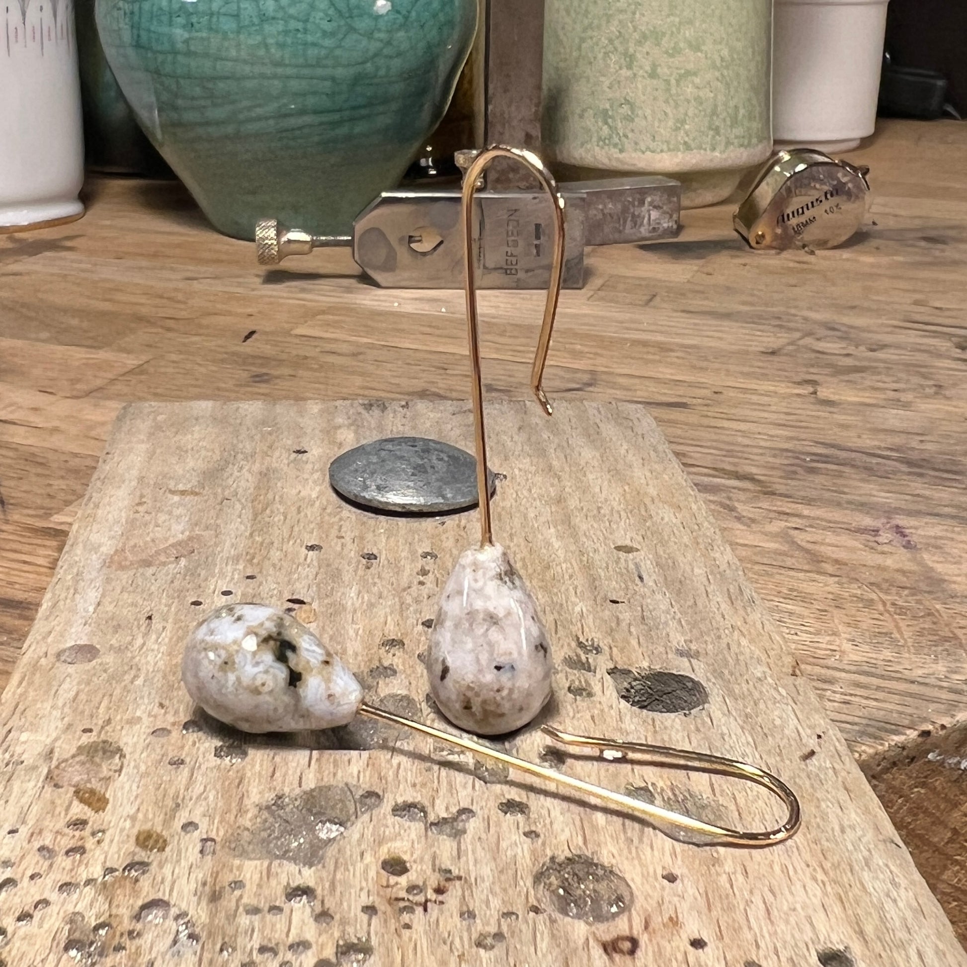 Guldørekroge med dråbeformede Jaspis 10 x 16 mm. Den samlede længde er 50 mm