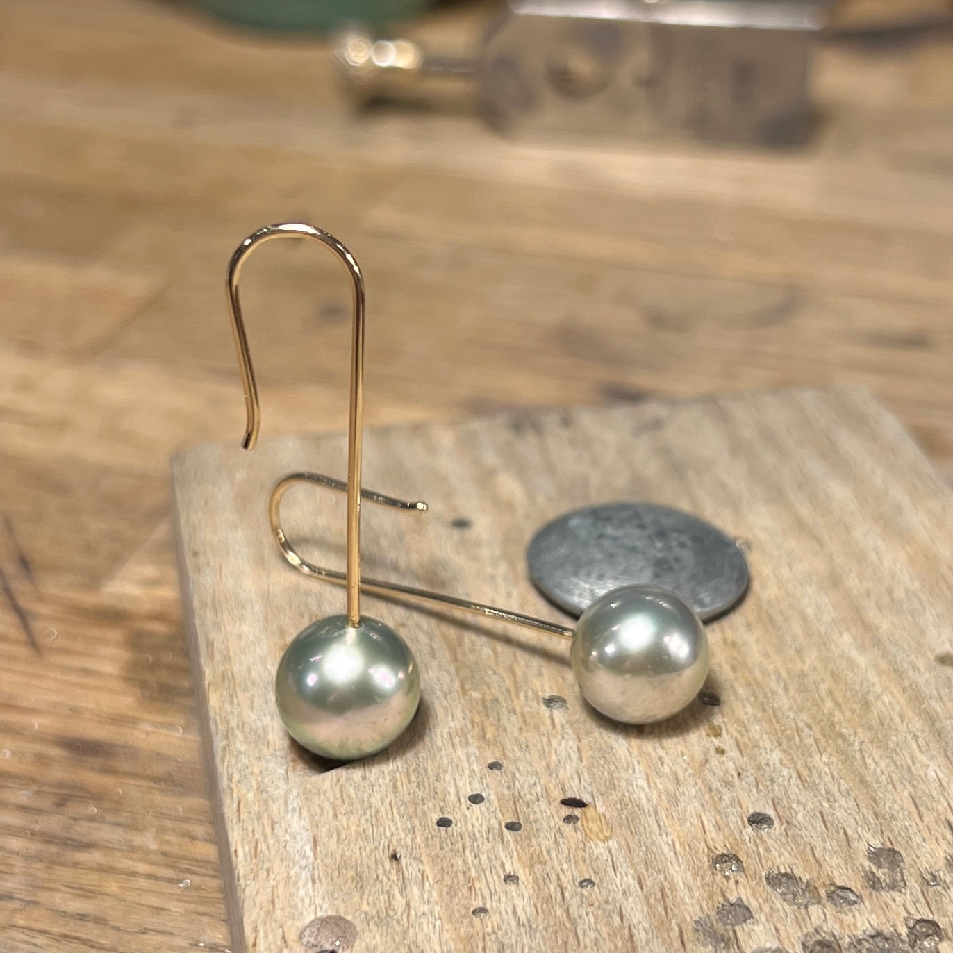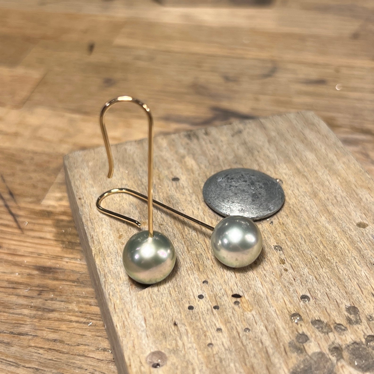 Guldørekroge med lys grønne Tahitiperler 10 mm 10 mm