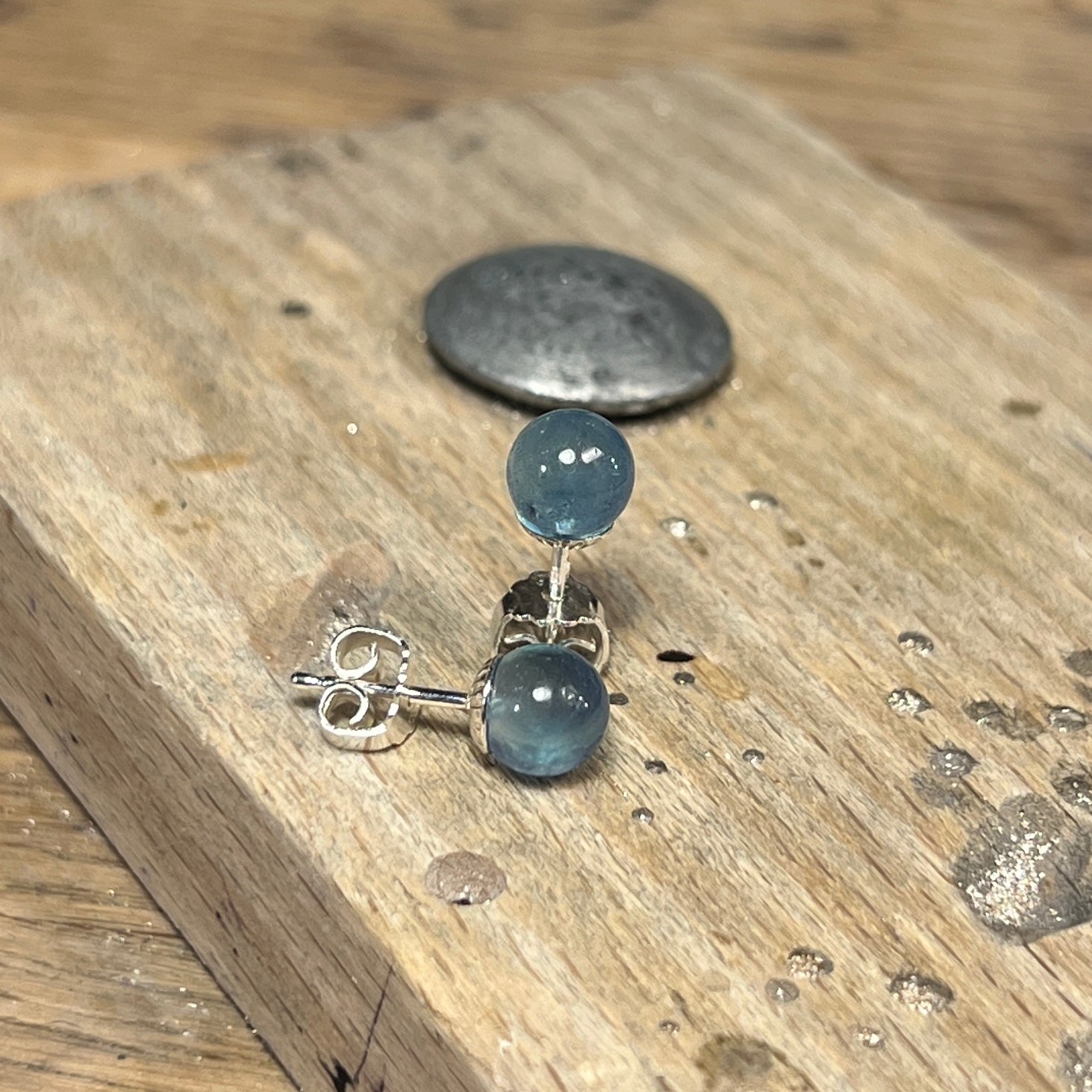 Sølvørespyd med 8 mm aqvamariner.