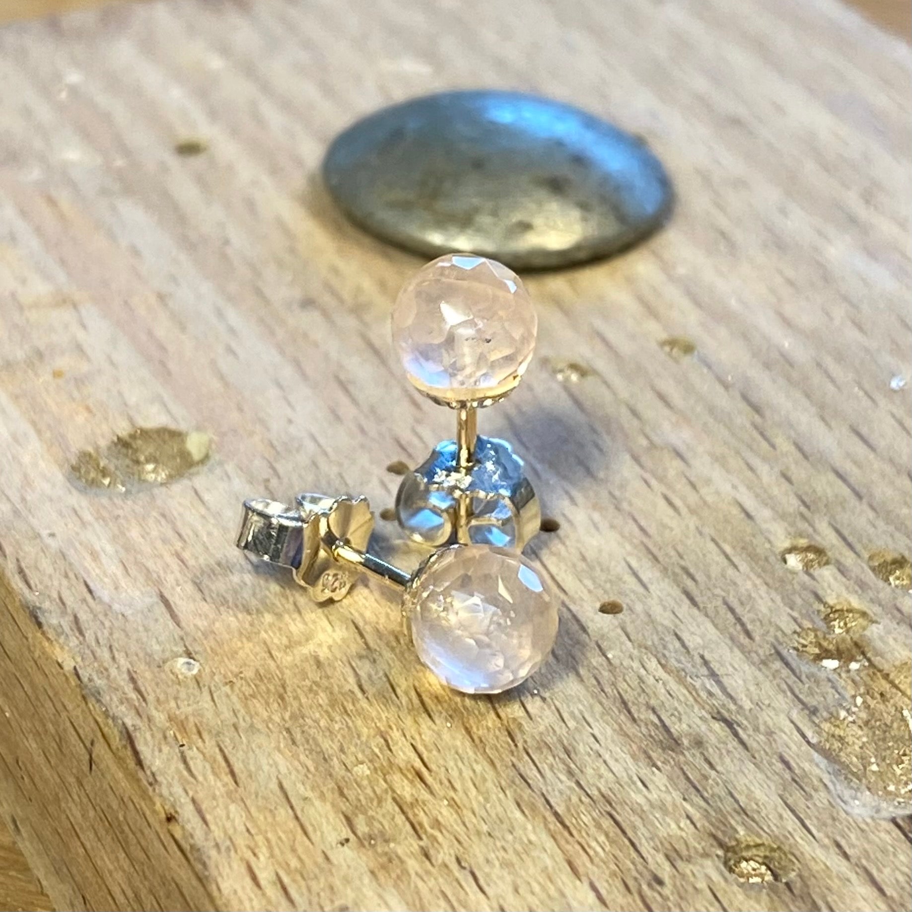 Sølvørestikker med 6 mm facetterede runde rosa quartz