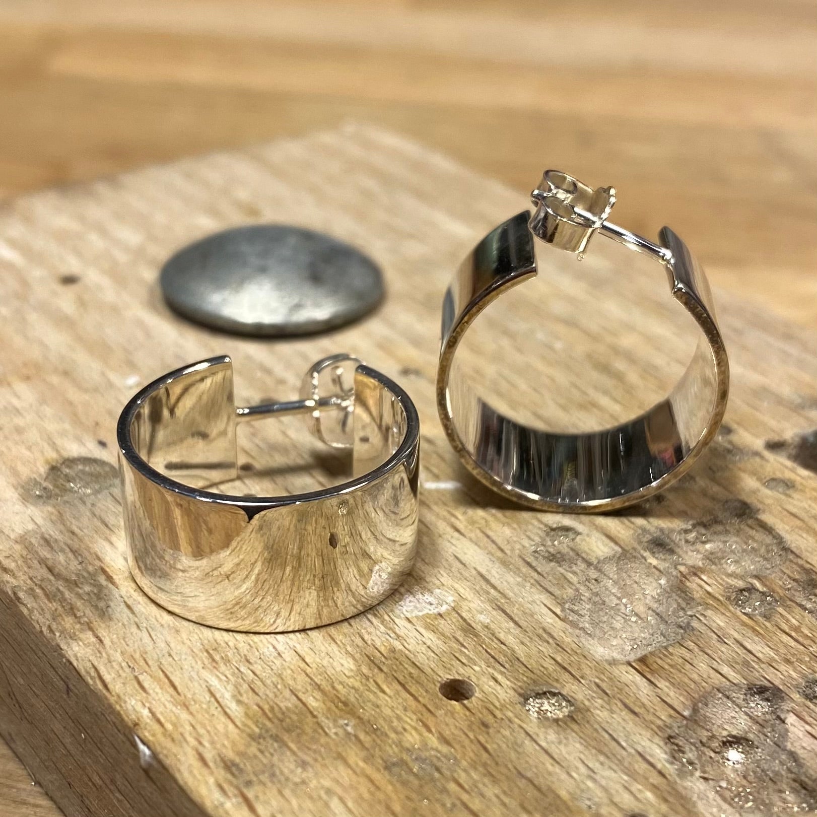 Blanke sølv ørecreoler. De er 91/2 mm brede og har diameter 19 mm