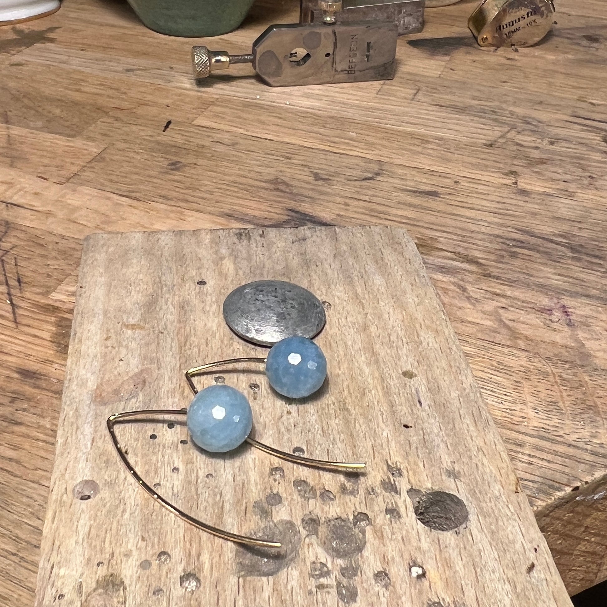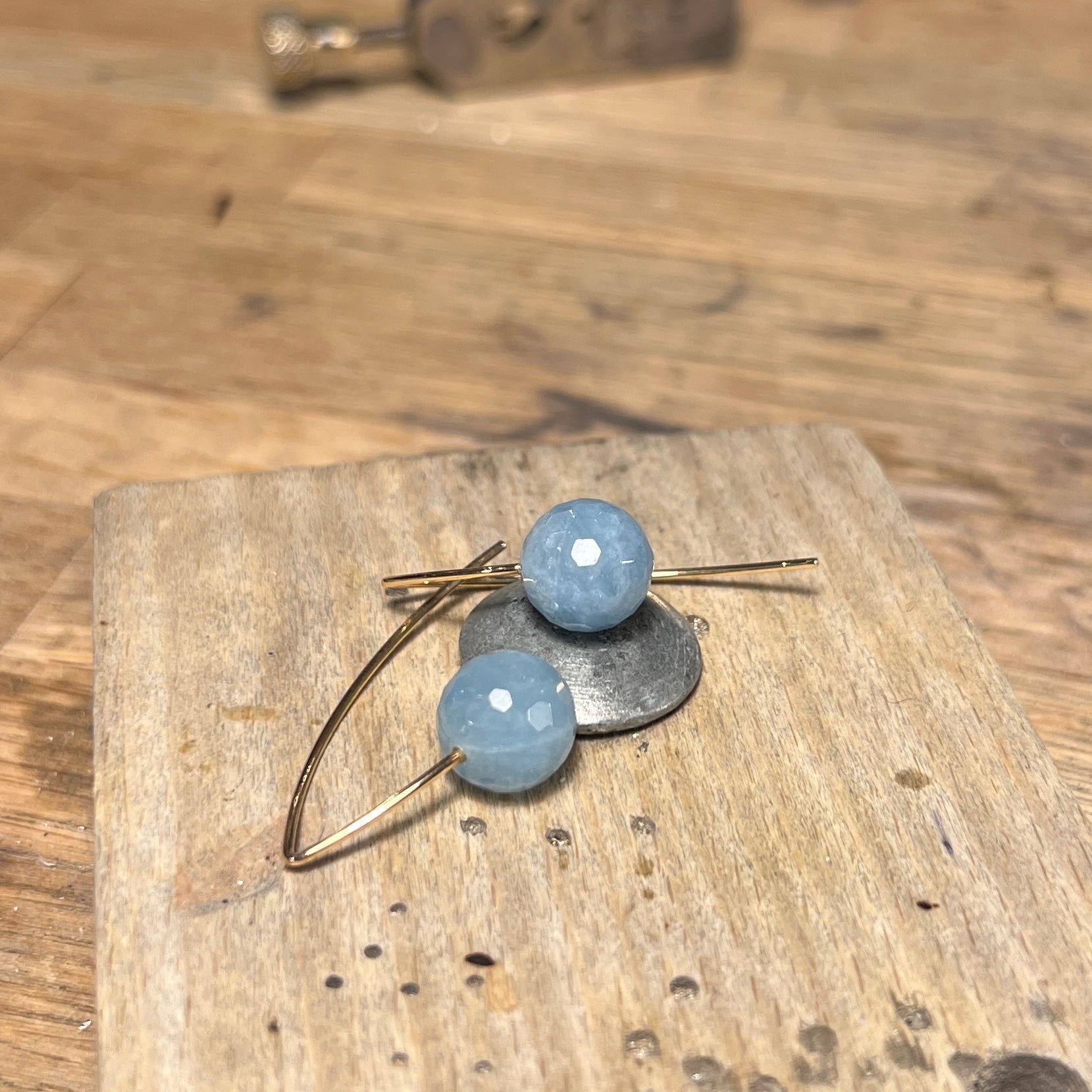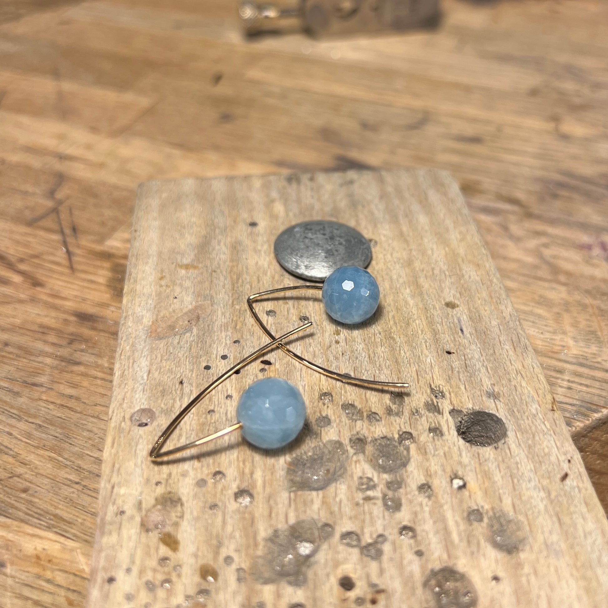 Guldøreringe med 10 mm rund facetteret Aqvamarin