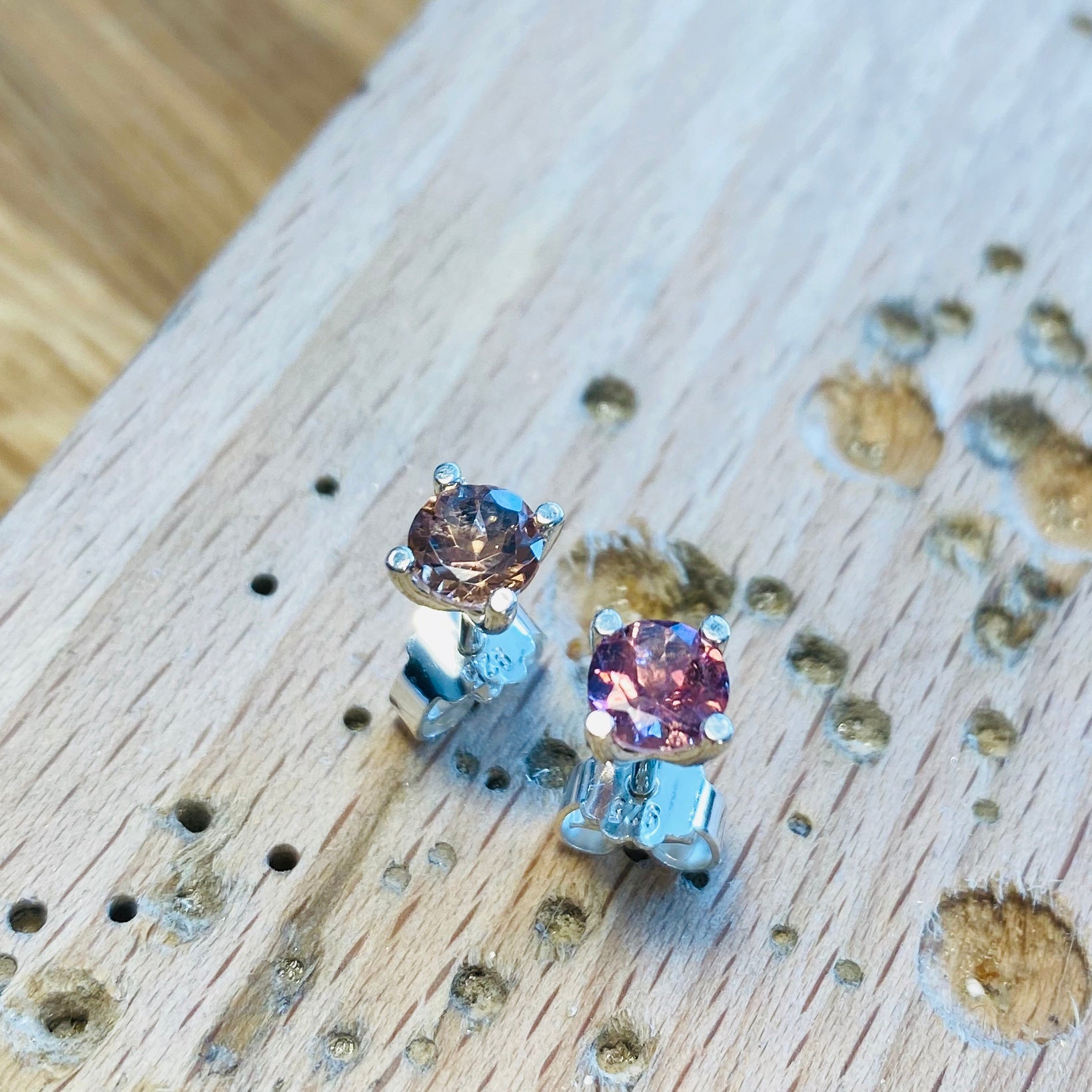 Sølvørestikker med 5 mm turmaliner. Den ene rosa og den anden mere pink. Ørestikkerne har 4 greb og er blanke.