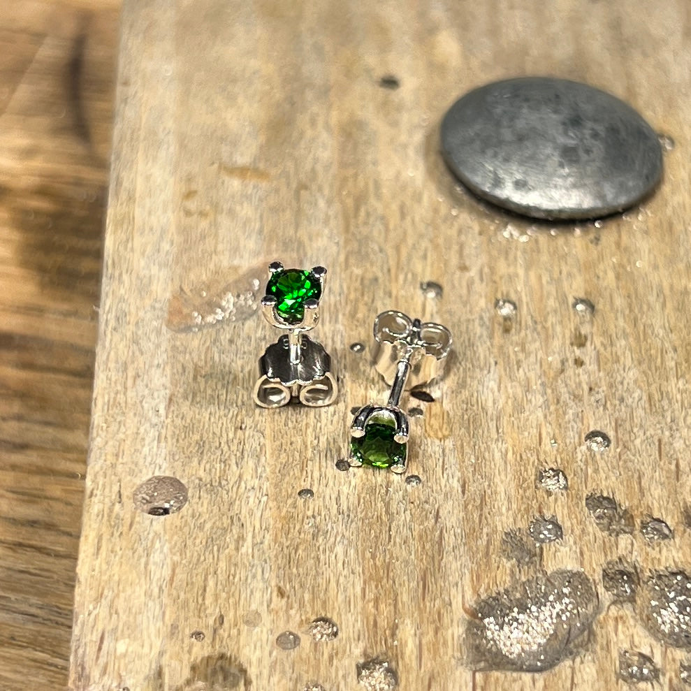Sølvørestikker med 4 mm facetterede crome-diopside.
