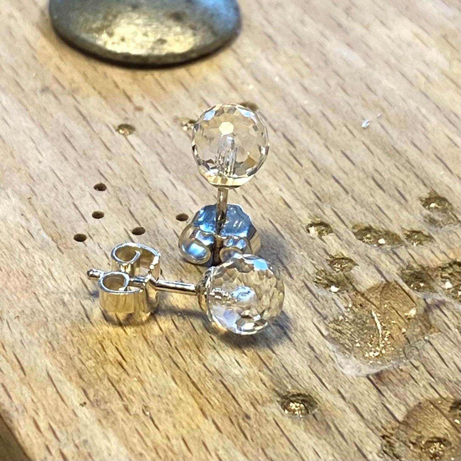 Sølvørestikker med 6 mm facetterede runde bjergkrystal