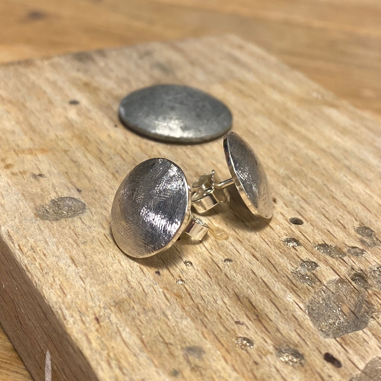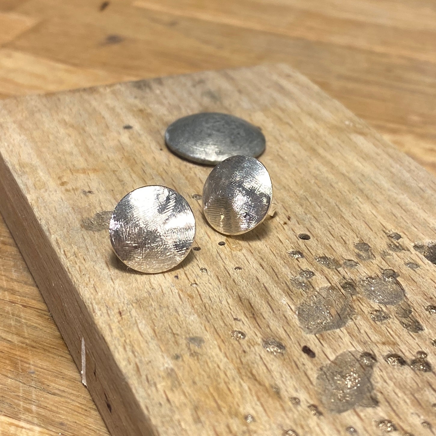 Runde ørestikker med let buet overflade og rustikt udtryk. Ørestikkerne er 13 mm