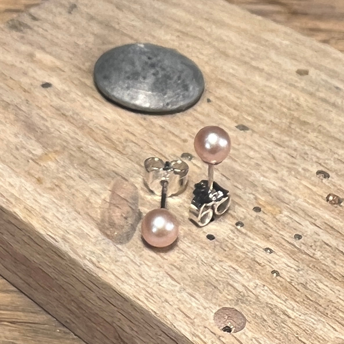 Sølvørestikker med 6 mm rosa ferskvandsperle