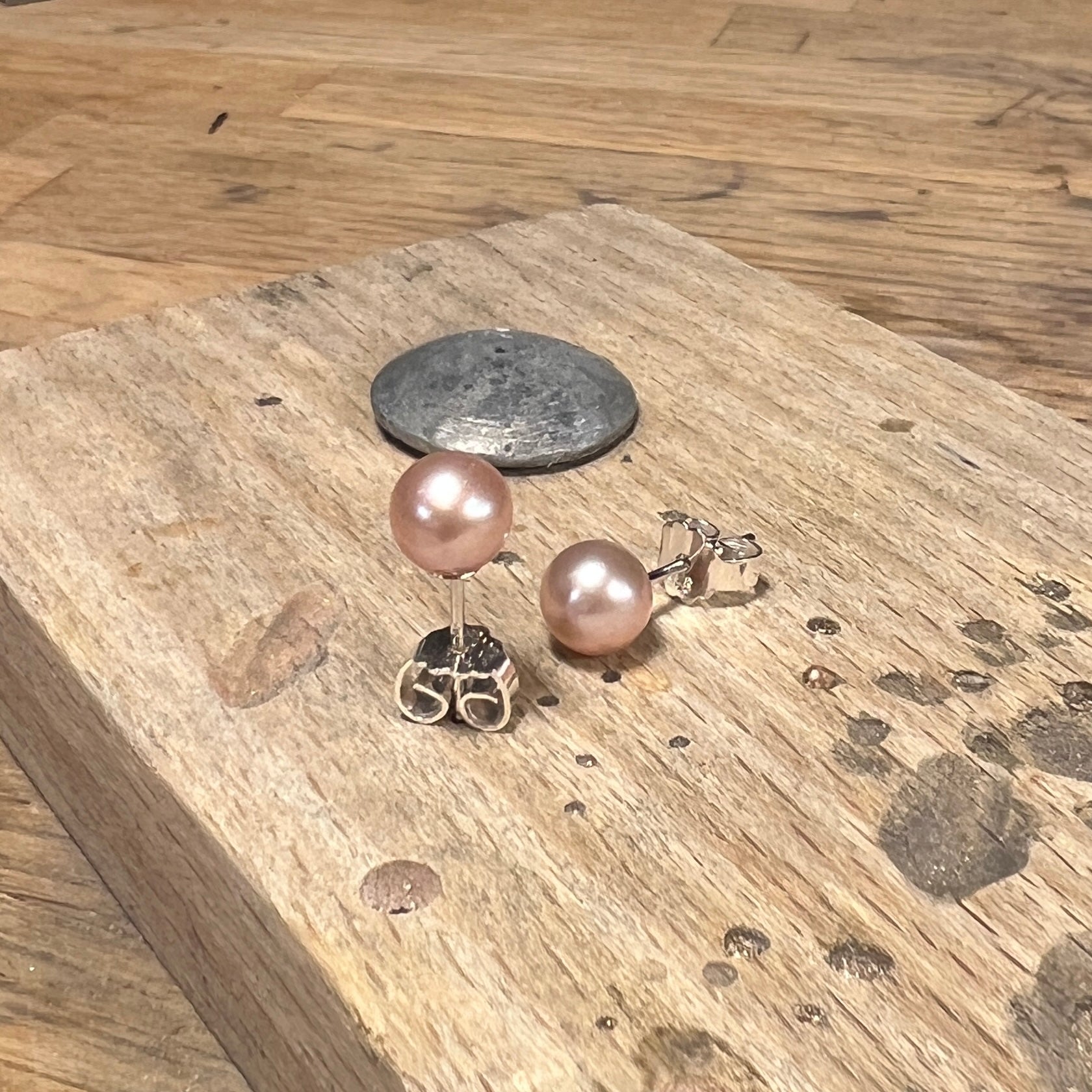 Sølvørestikker med 6 mm rosa ferskvandsperle