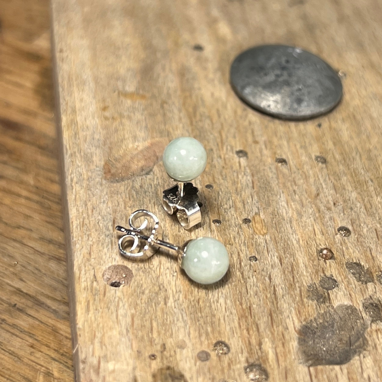 Sølvørestikker med runde 6 mm jade