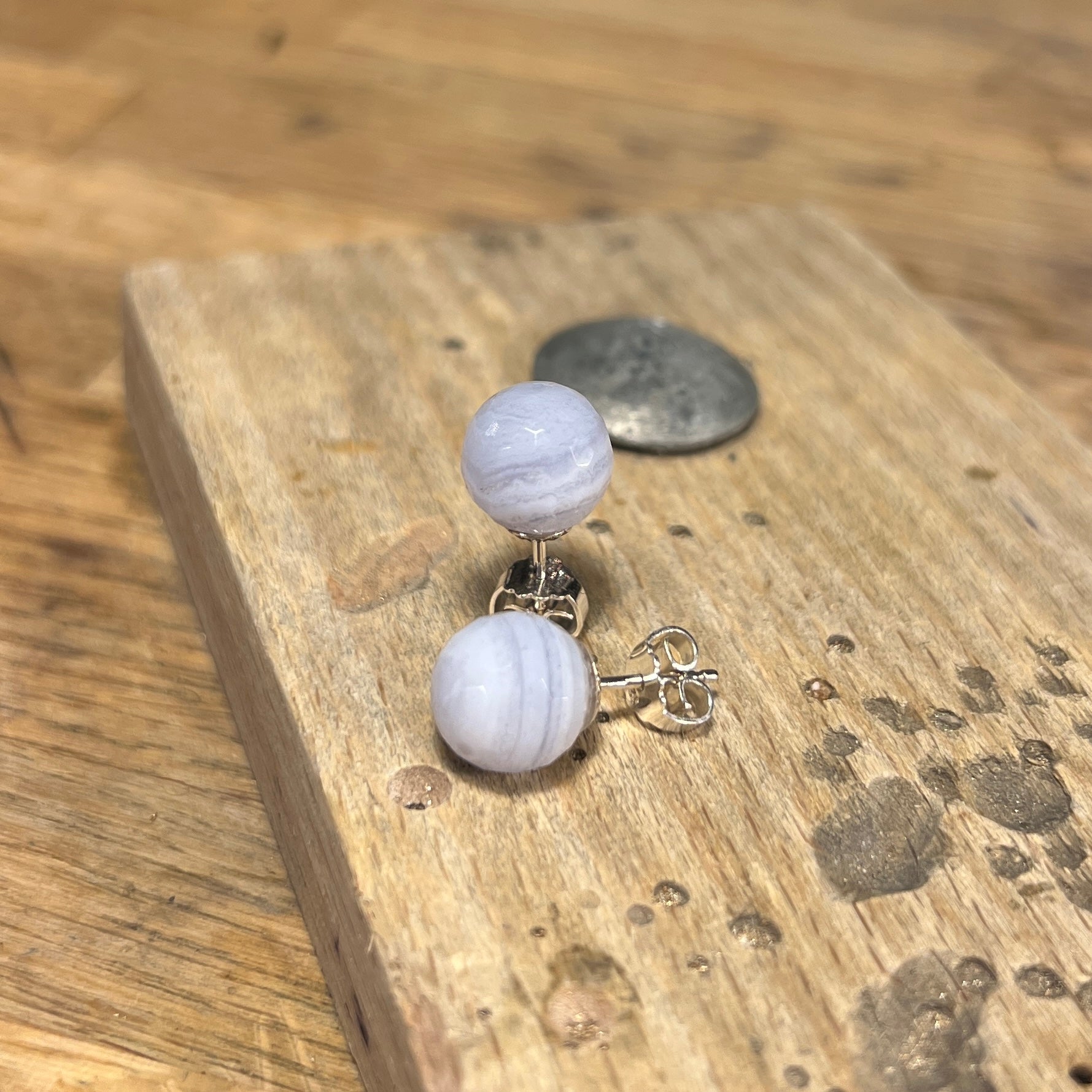 Sølvørestikker med runde 10 mm calcedon