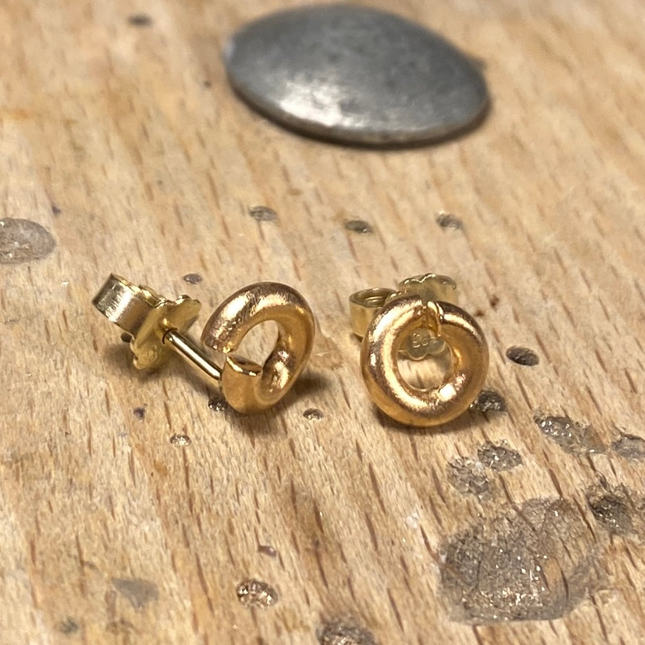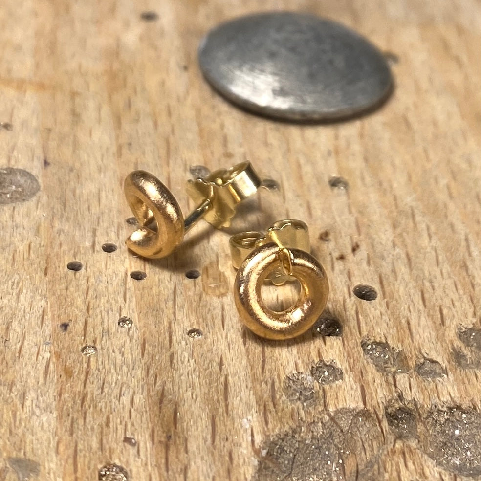 Guldørestikker med børstet overflade. Ørestikkerne er 7 mm i diamater.