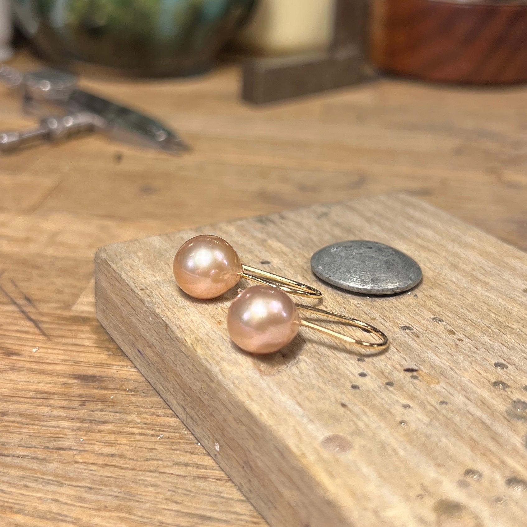 Guldørekroge med rosa uensartede ferskvandsperler 10 mm