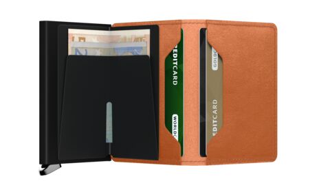 Slimwallet kan indeholde 4-6 kort plus 6 ekstra kort