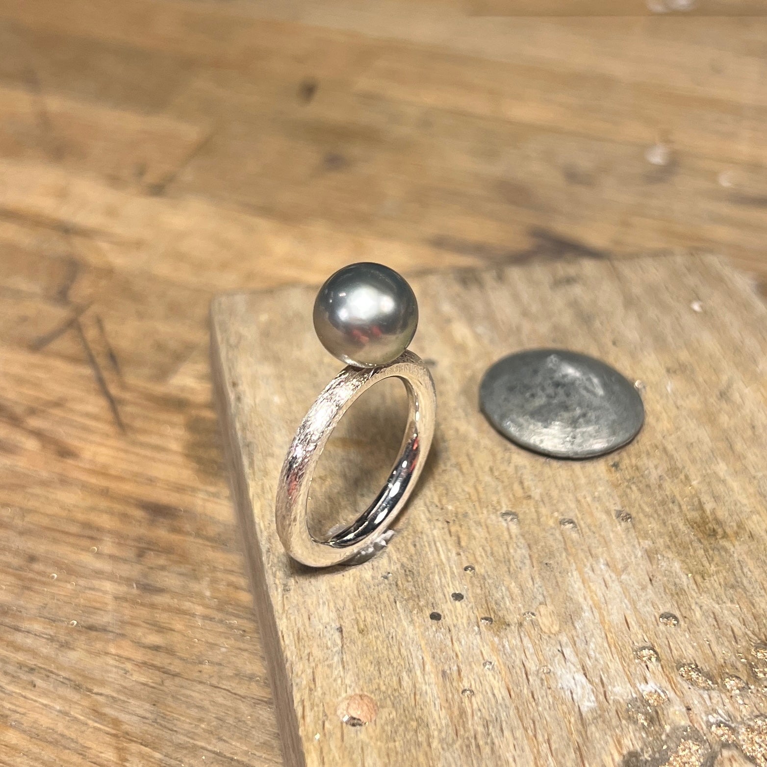 Ring af Sterling Sølv med grågrøn 10 mm Tahiti perle.