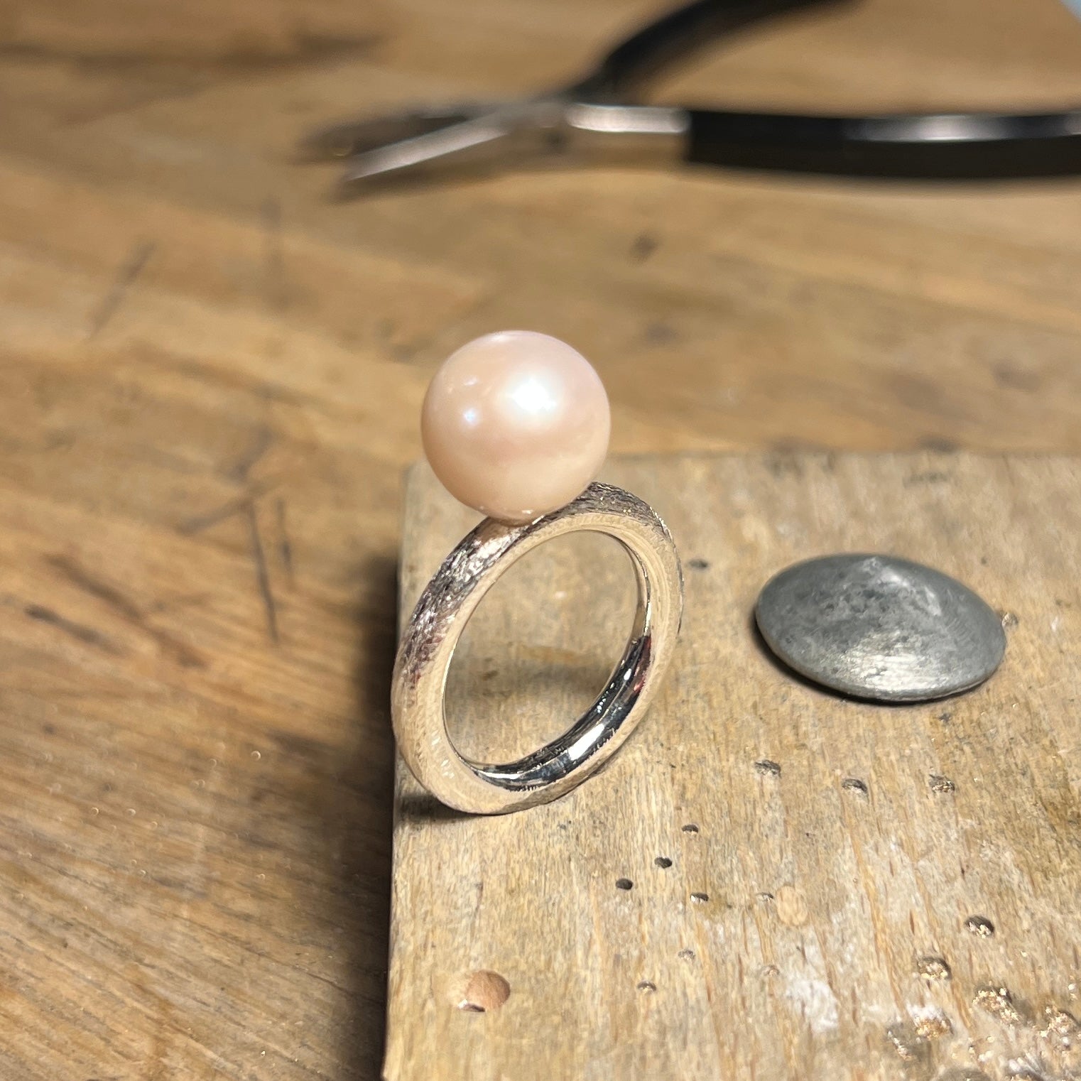 Sterling Sølv ring med 12 mm hvidlig ferskvandsperle.