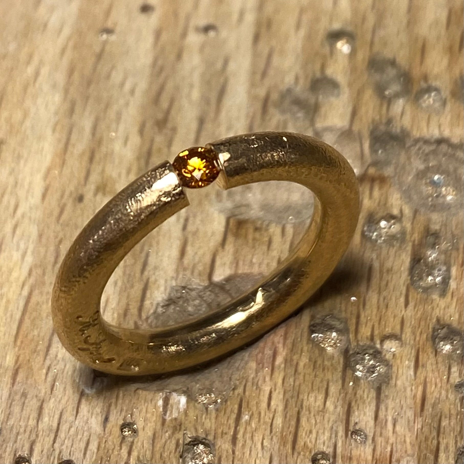 Rund guldring med 0,10 ct. Cognac behandlet brillant i spænd