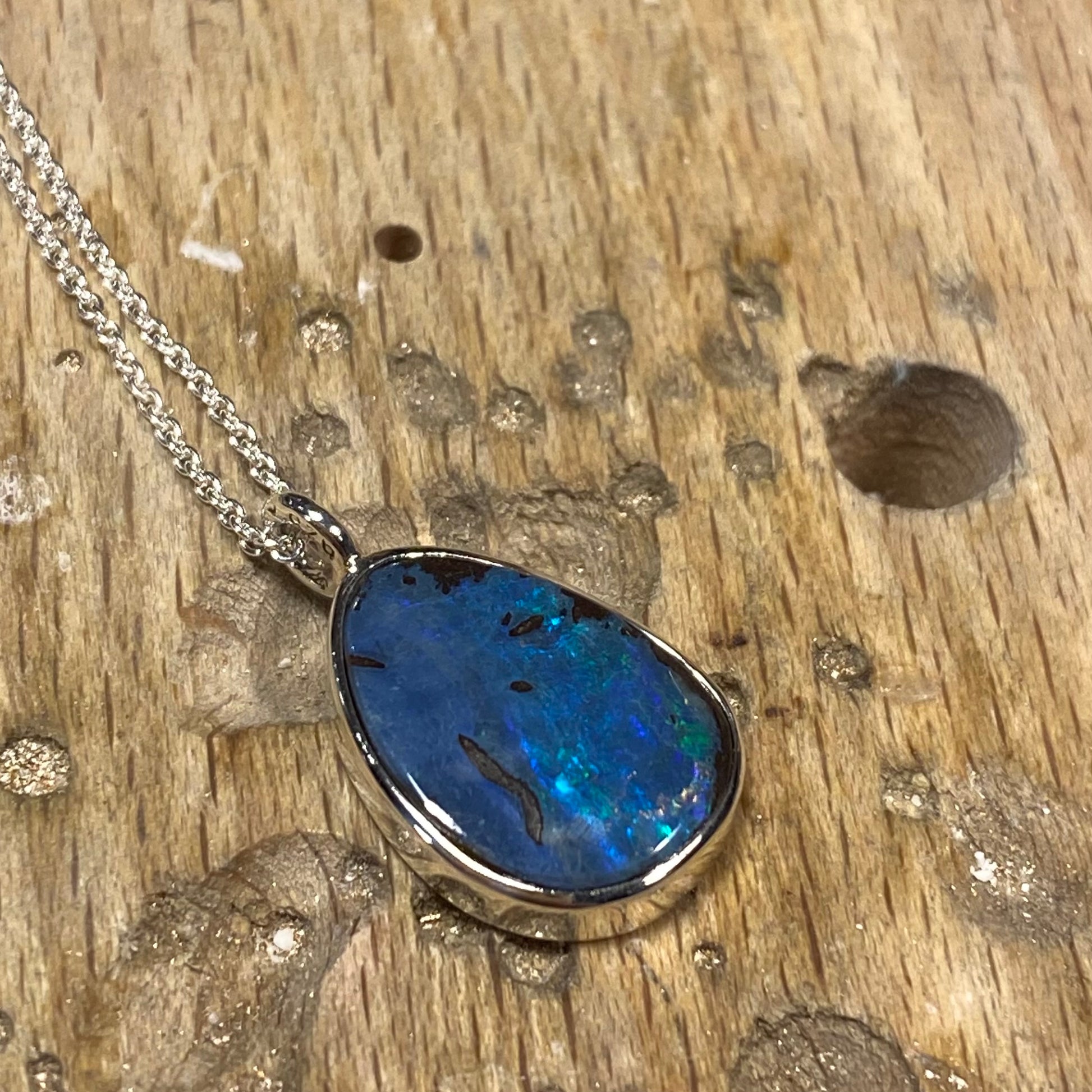 Sølvvedhæng med opal. Stenen er 11 x 16 mm. Prisen er excl. kæde