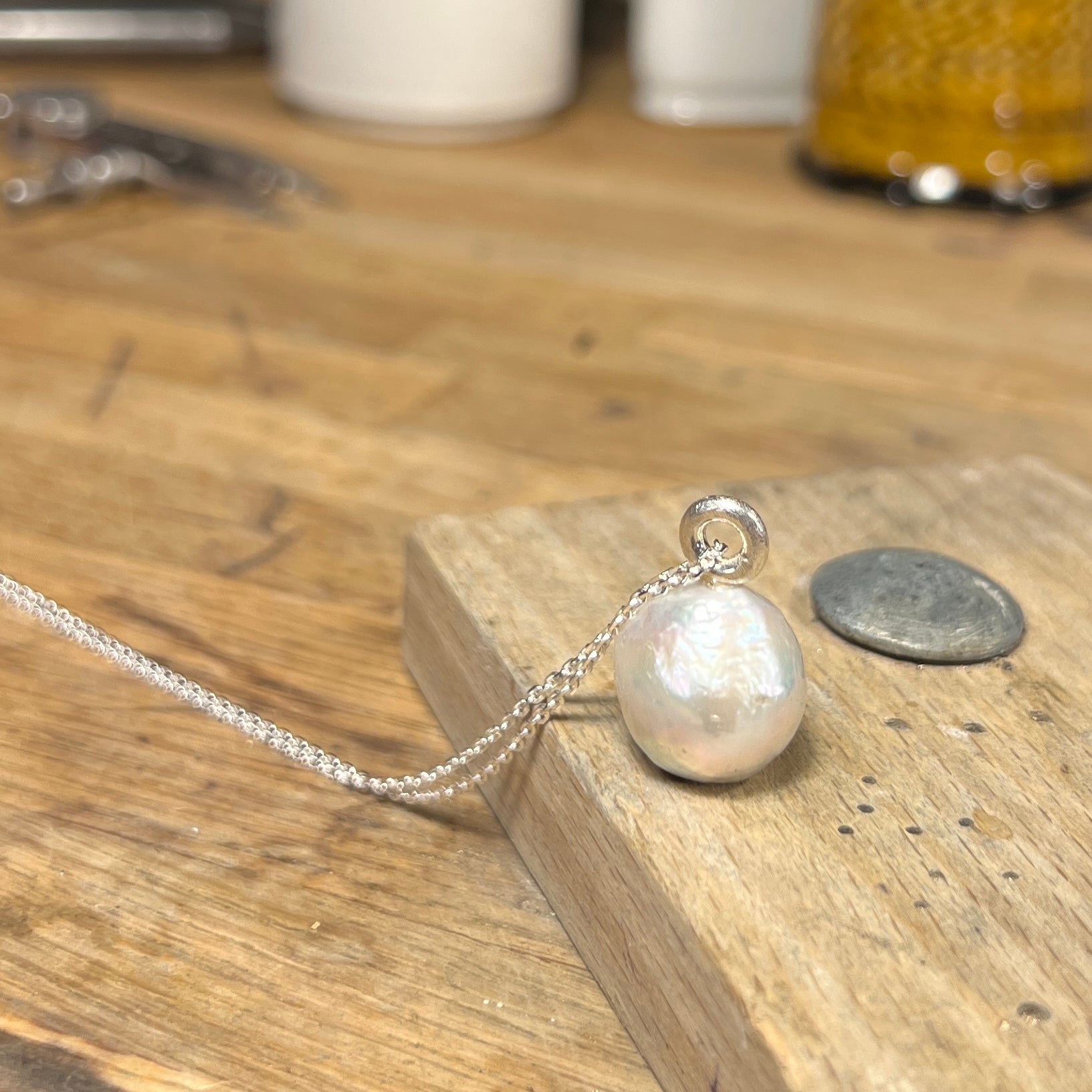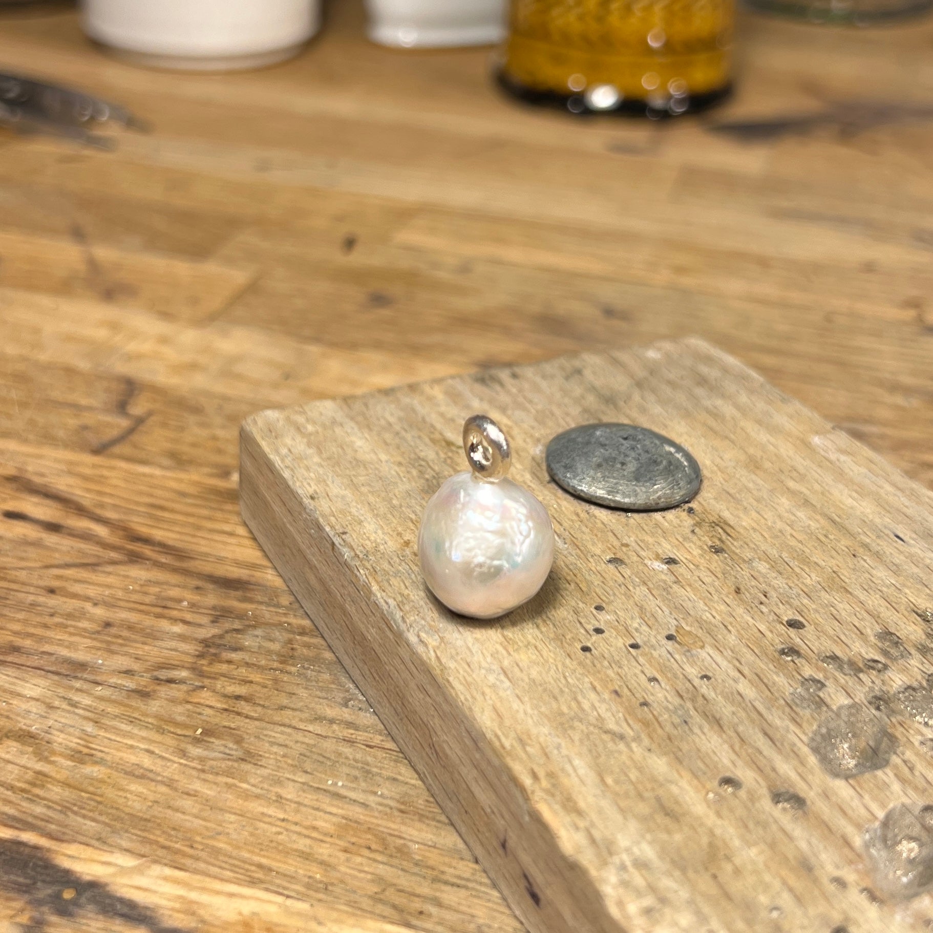 Perlevedhæng - ferskvandsperle 14,5 mm med Sterling Sølvophæng ex. kæde