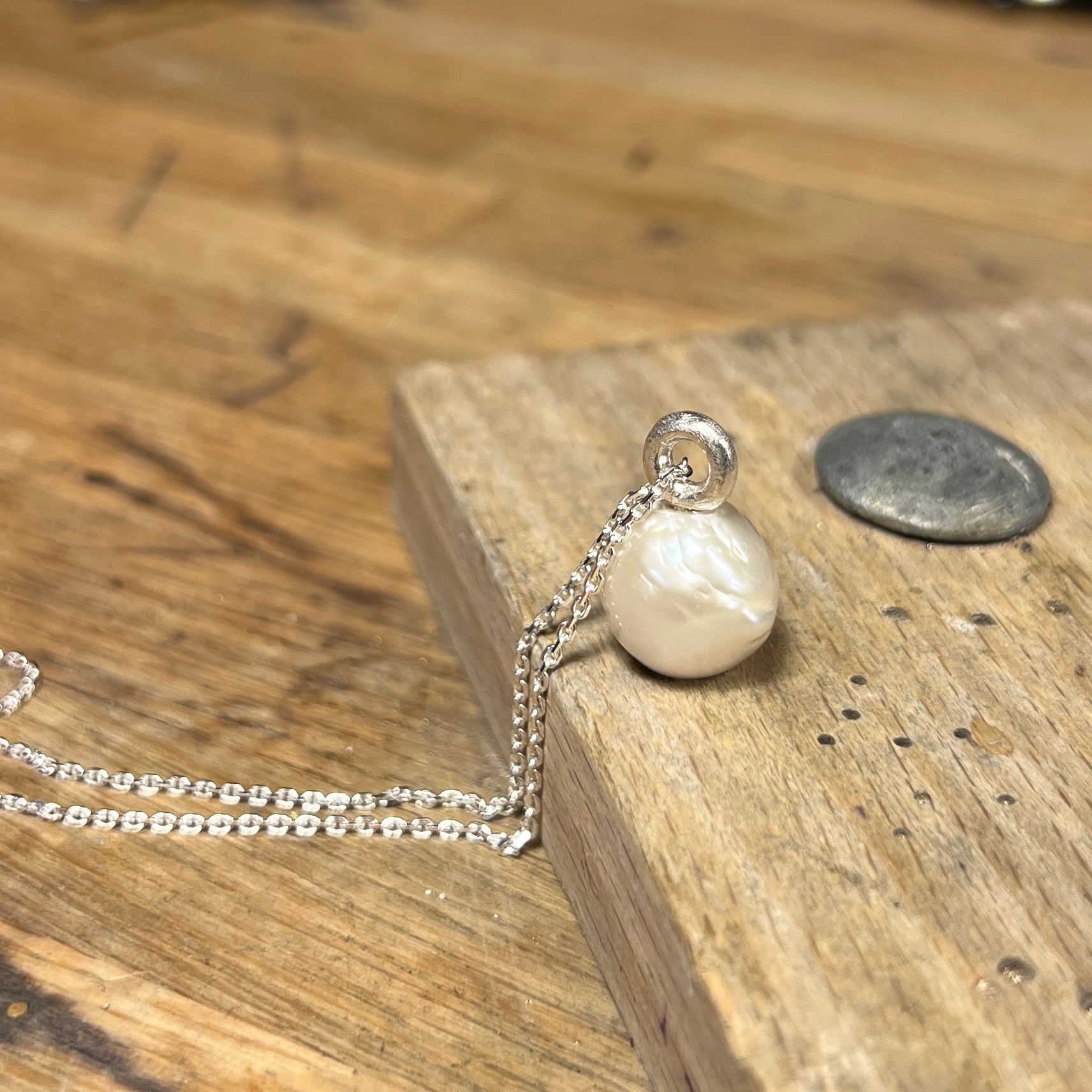 Perlevedhæng - ferskvandsperle 12 mm med Sterling Sølvophæng ex. kæde