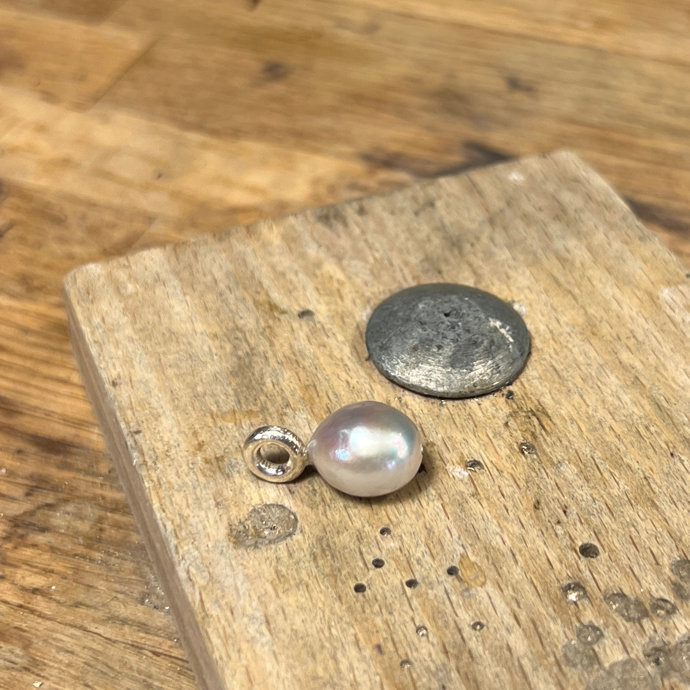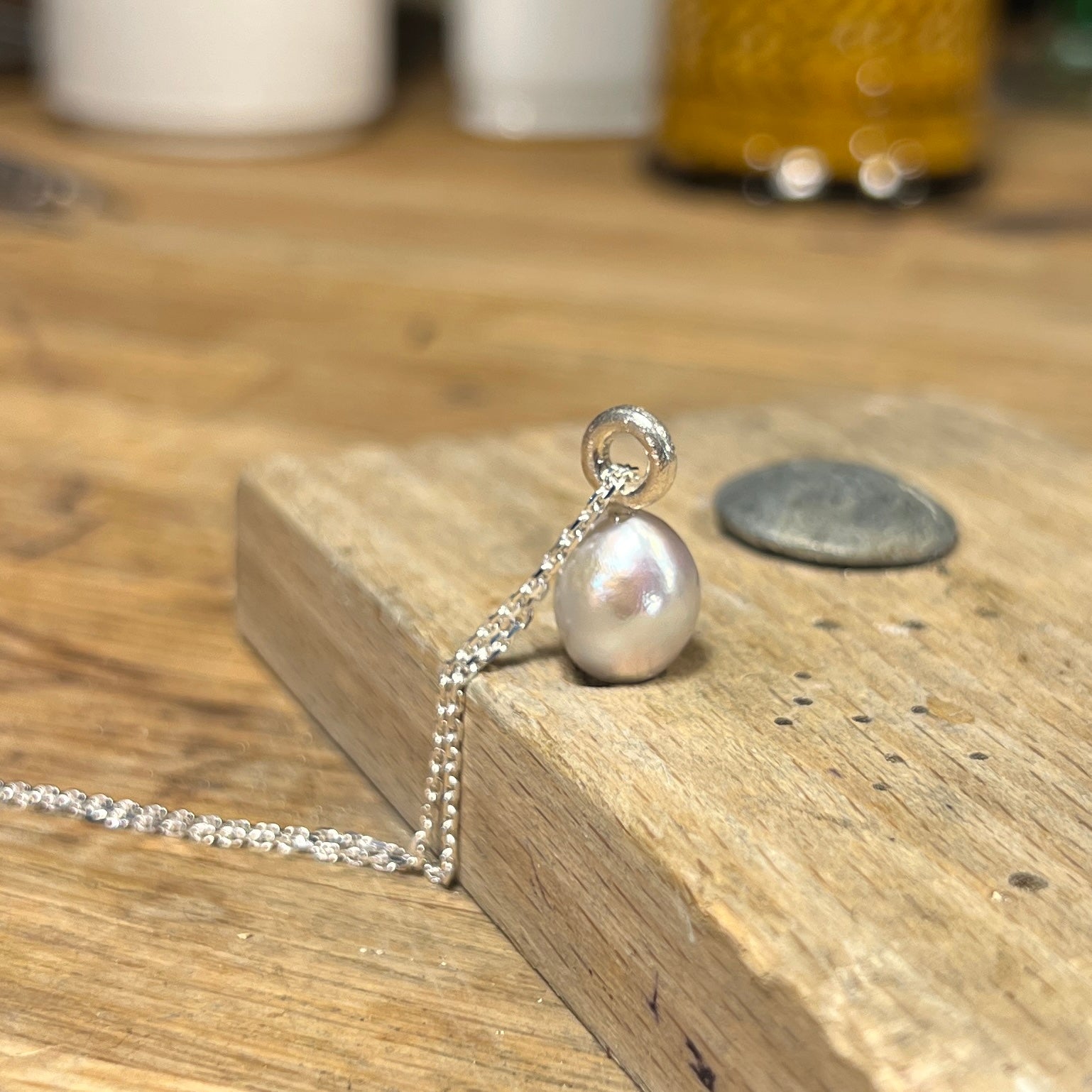 Perlevedhæng - ferskvandsperle 9,5 - 11,5 mm med Sterling Sølvophæng ex. kæde