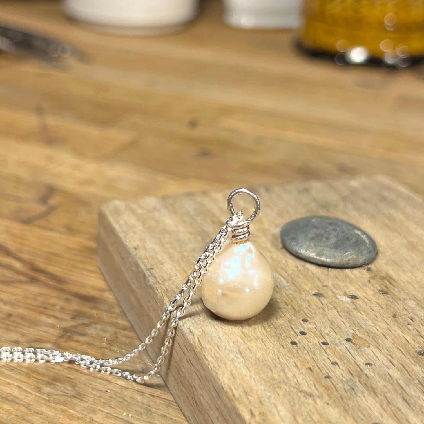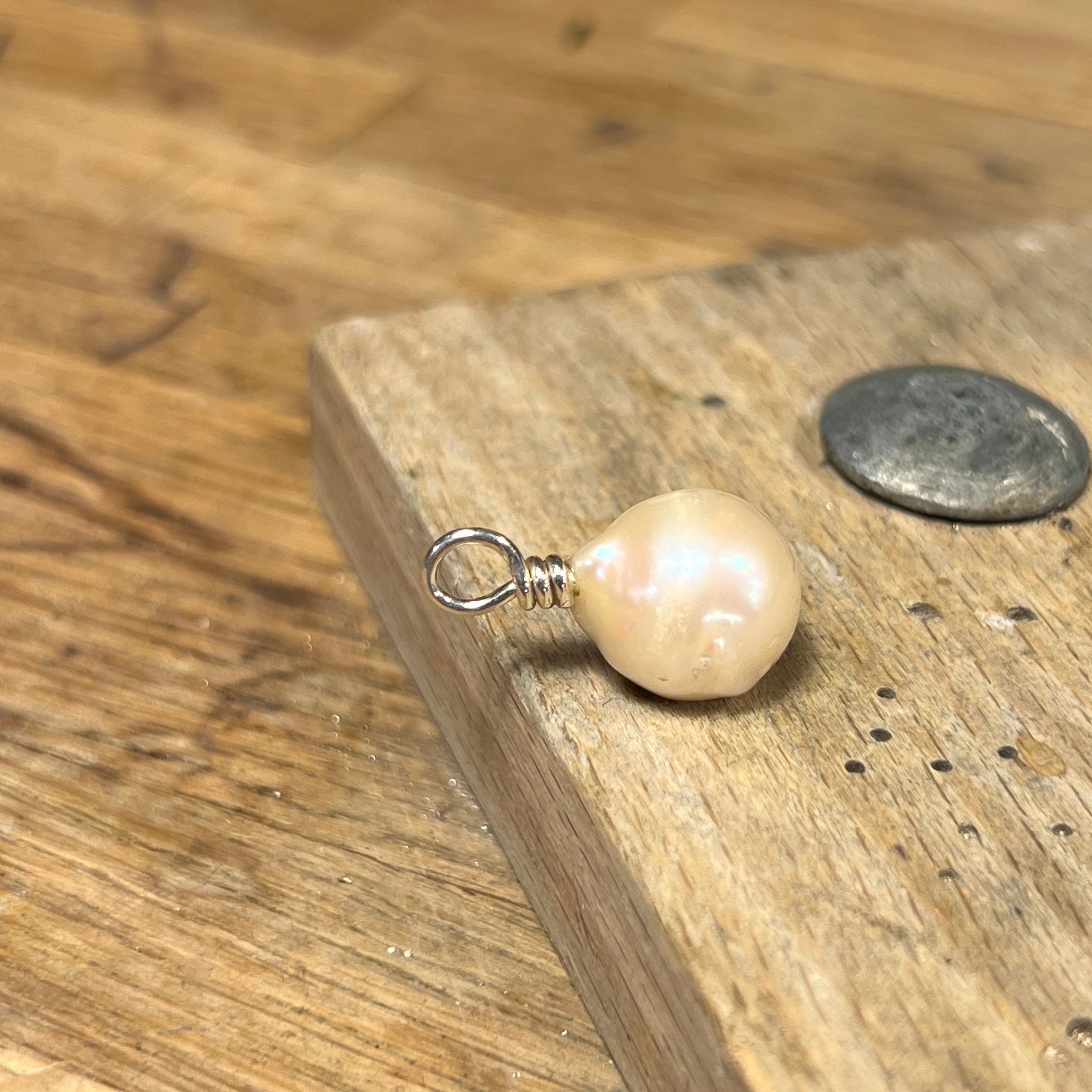Perlevedhæng - ferskvandsperle 12,5 mm med Sterling Sølvophæng ex. kæde