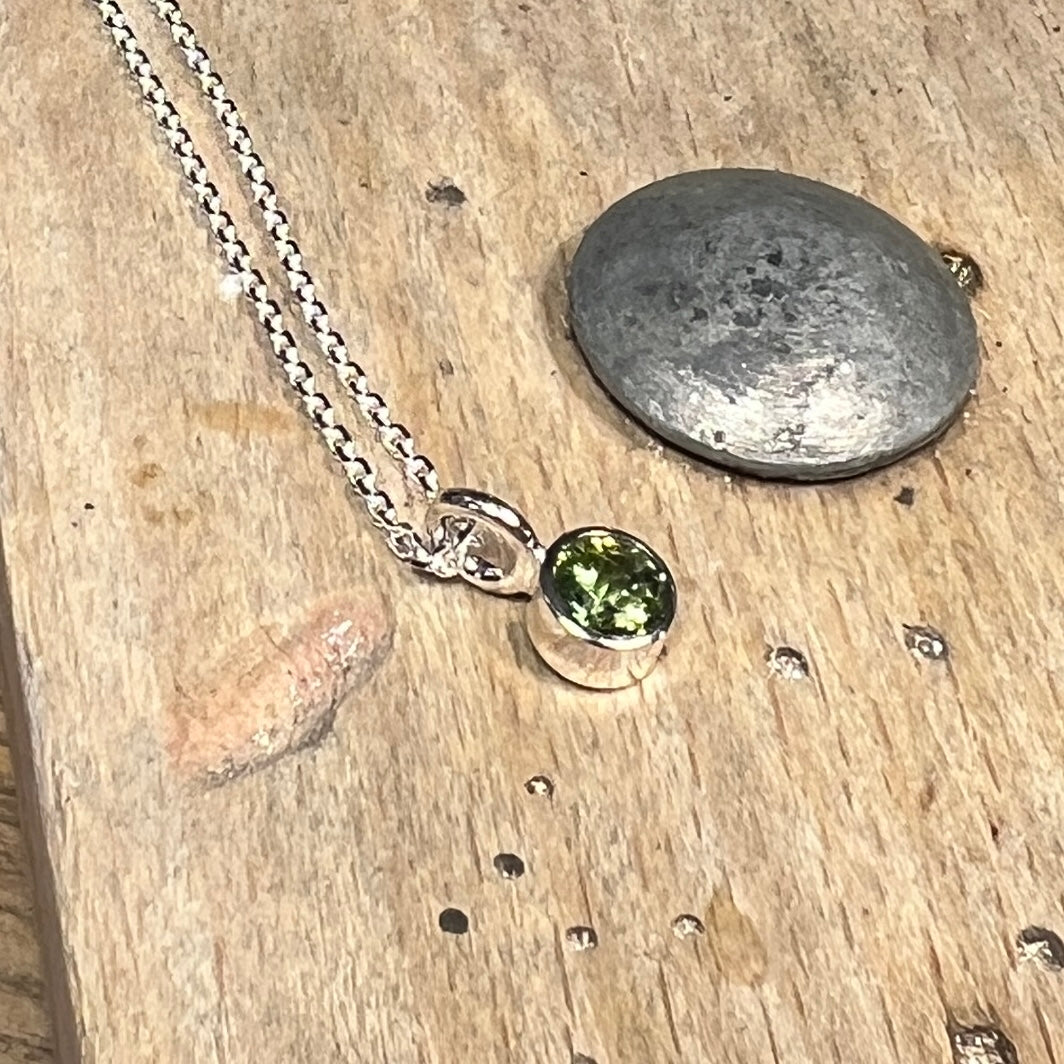 Sølvvedhæng med 5 mm facetteret GRØN TURMALIN. Prisen er excl. kæde.
