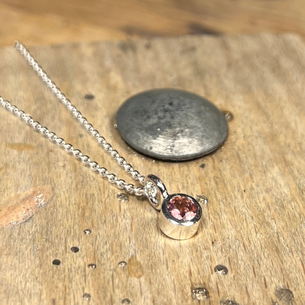 Sølvvedhæng med 5 mm ROSA TURMALIN. Prisen er excl. kæde