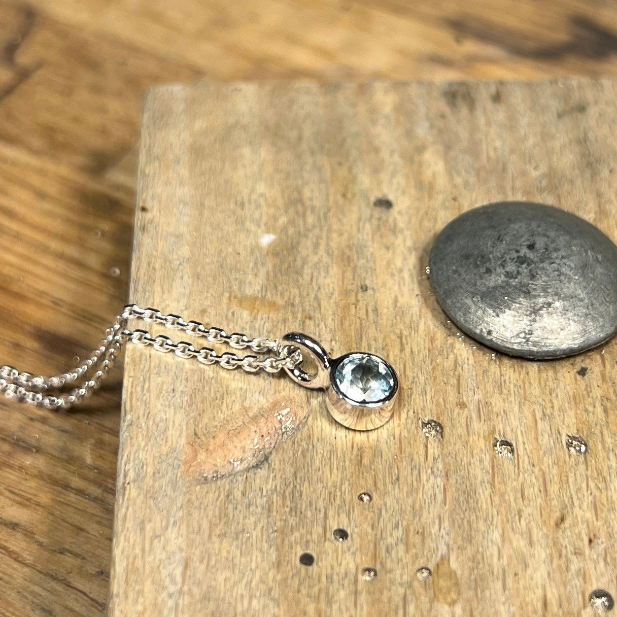 Sølvvedhæng med 5 mm facetteret Skye Blue Topas. Prisen er excl. kæde.
